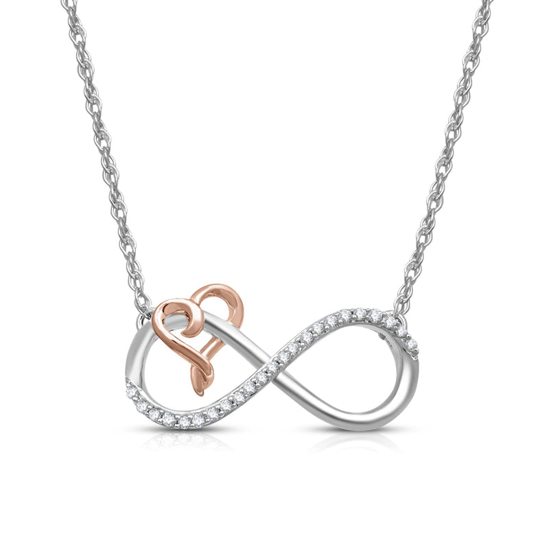 Jewelili Hallmark Fine Jewelry Rose Gold Over Sterling Silver With 1/10 CTTW Natural White Diamonds Little Heart Infinity Pendant Necklace