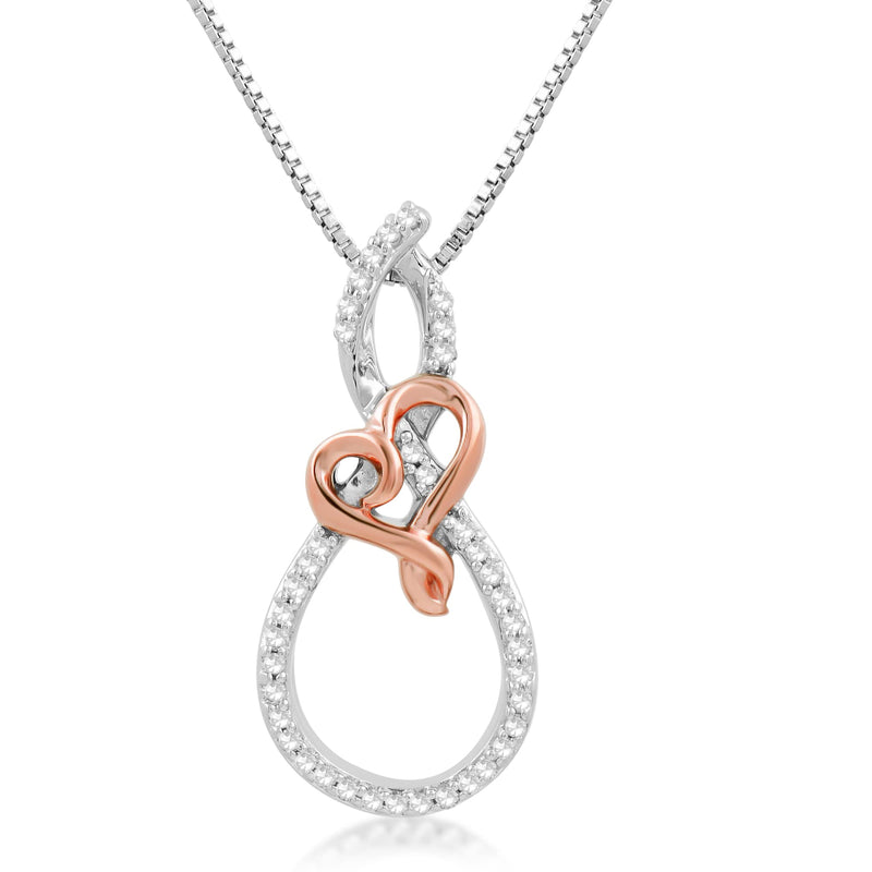 • Hallmark Fine Jewelry Rose Gold Over Sterling Silver With 1/6 Cttw Natural White Diamonds Heart Twisted Infinity Pendant Necklace
