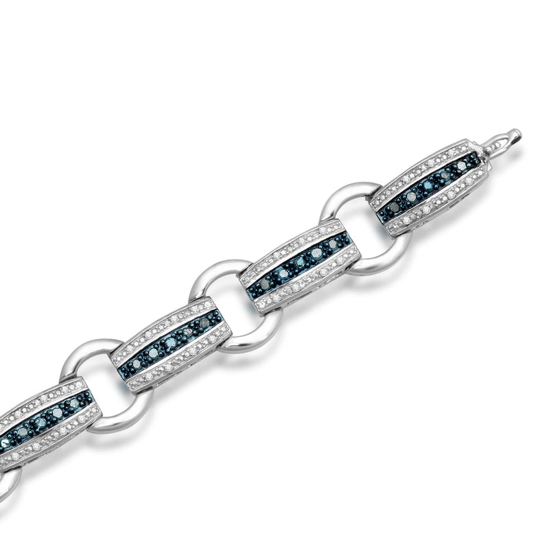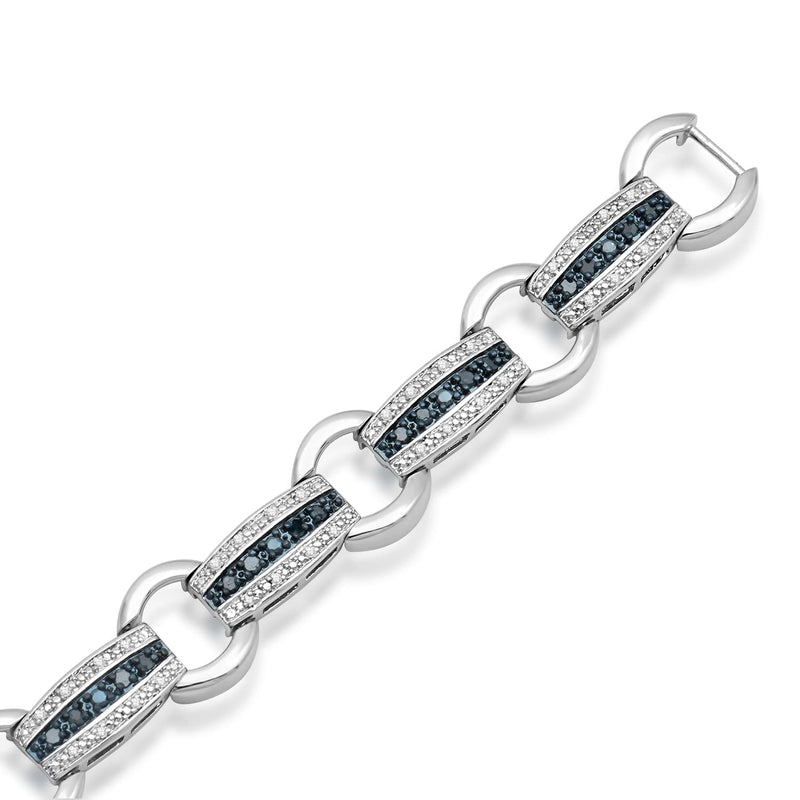 Details: Palladium Flash Over Brass 1.00 Cttw Treated Blue Diamond and Natural White Diamonds Link Bracelet