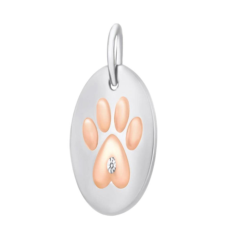 Jewelili Rose Gold Over Stainless Steel With Round Diamonds Dog Tag Pendant Necklace