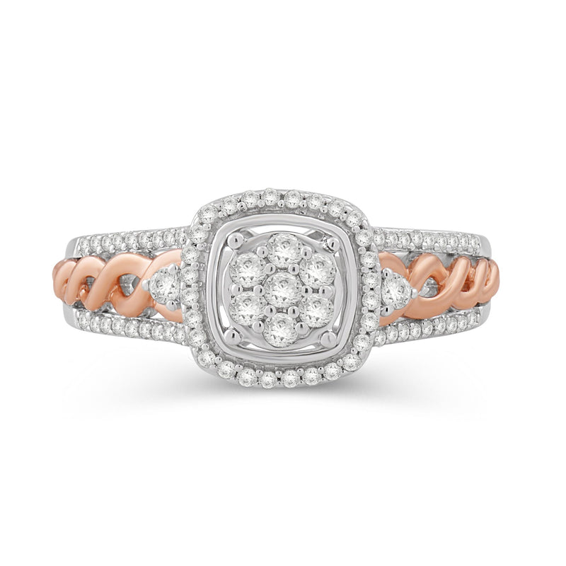 • Load image into Gallery viewer, Jewelili Engagement Ring with Natural White Round Diamonds in 14K Rose Gold over Sterling Silver 1/3 CTTW View 1