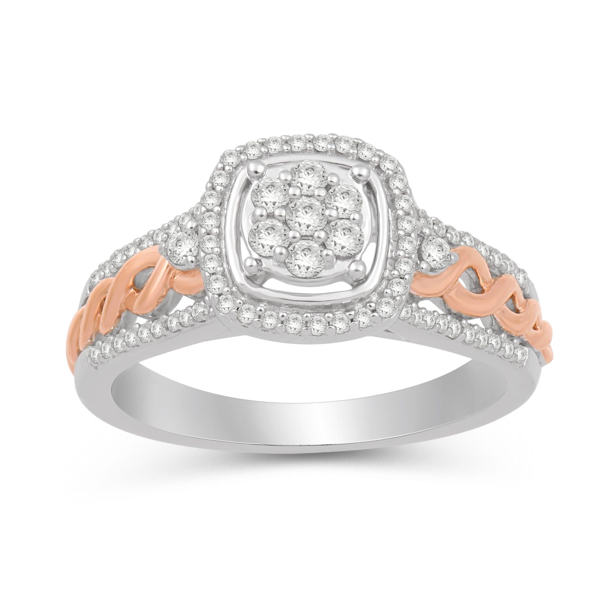 Jewelili 14K Rose Gold Over Sterling Silver With 1/3 CTTW Natural White Round Diamonds Engagement Ring