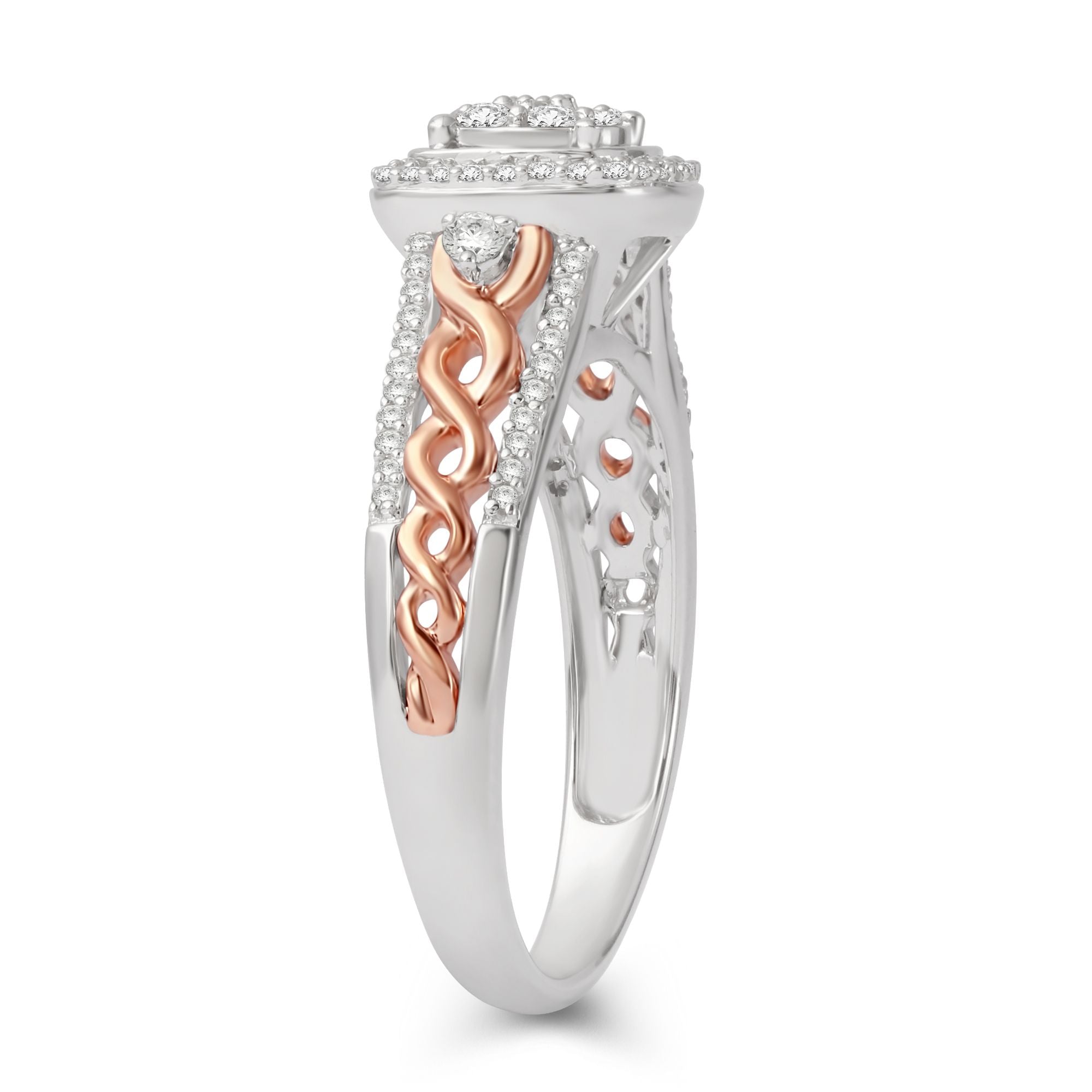 • Load image into Gallery viewer, Jewelili Engagement Ring with Natural White Round Diamonds in 14K Rose Gold over Sterling Silver 1/3 CTTW View 3