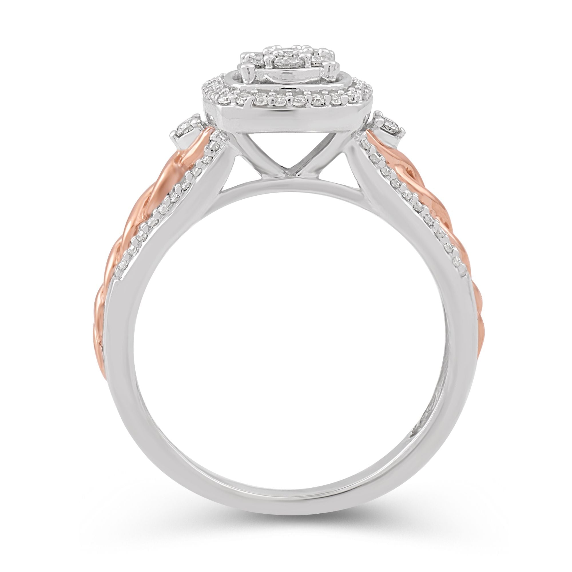 • Load image into Gallery viewer, Jewelili Engagement Ring with Natural White Round Diamonds in 14K Rose Gold over Sterling Silver 1/3 CTTW View 4
