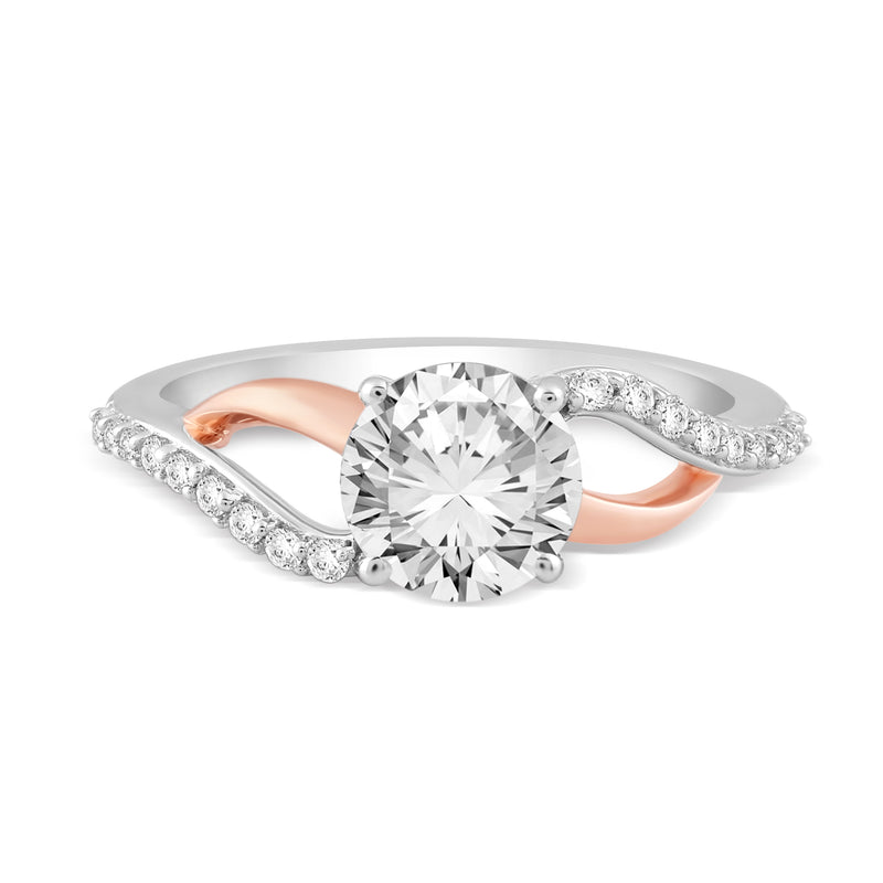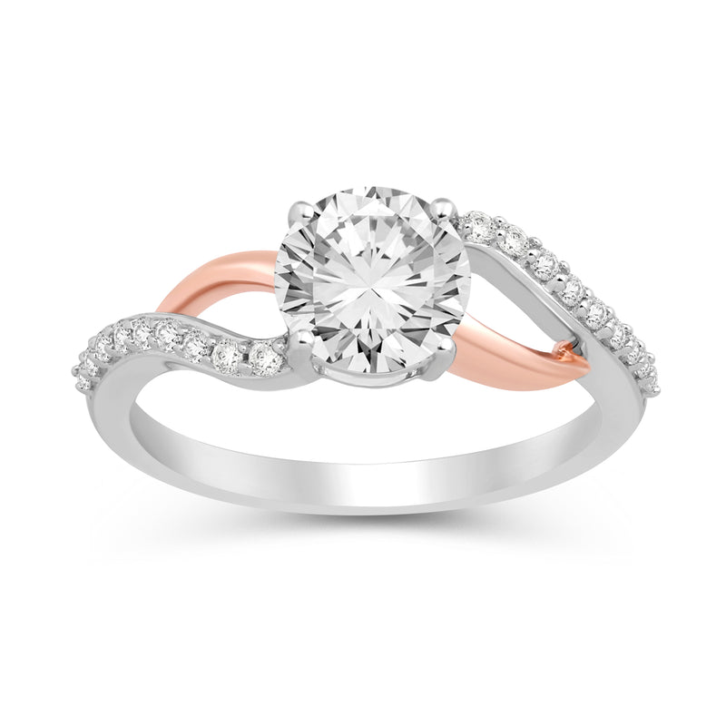 • Engagement Ring in Rose Gold over Sterling Silver with 7 MM and 1.25MM Round Created White Sapphire