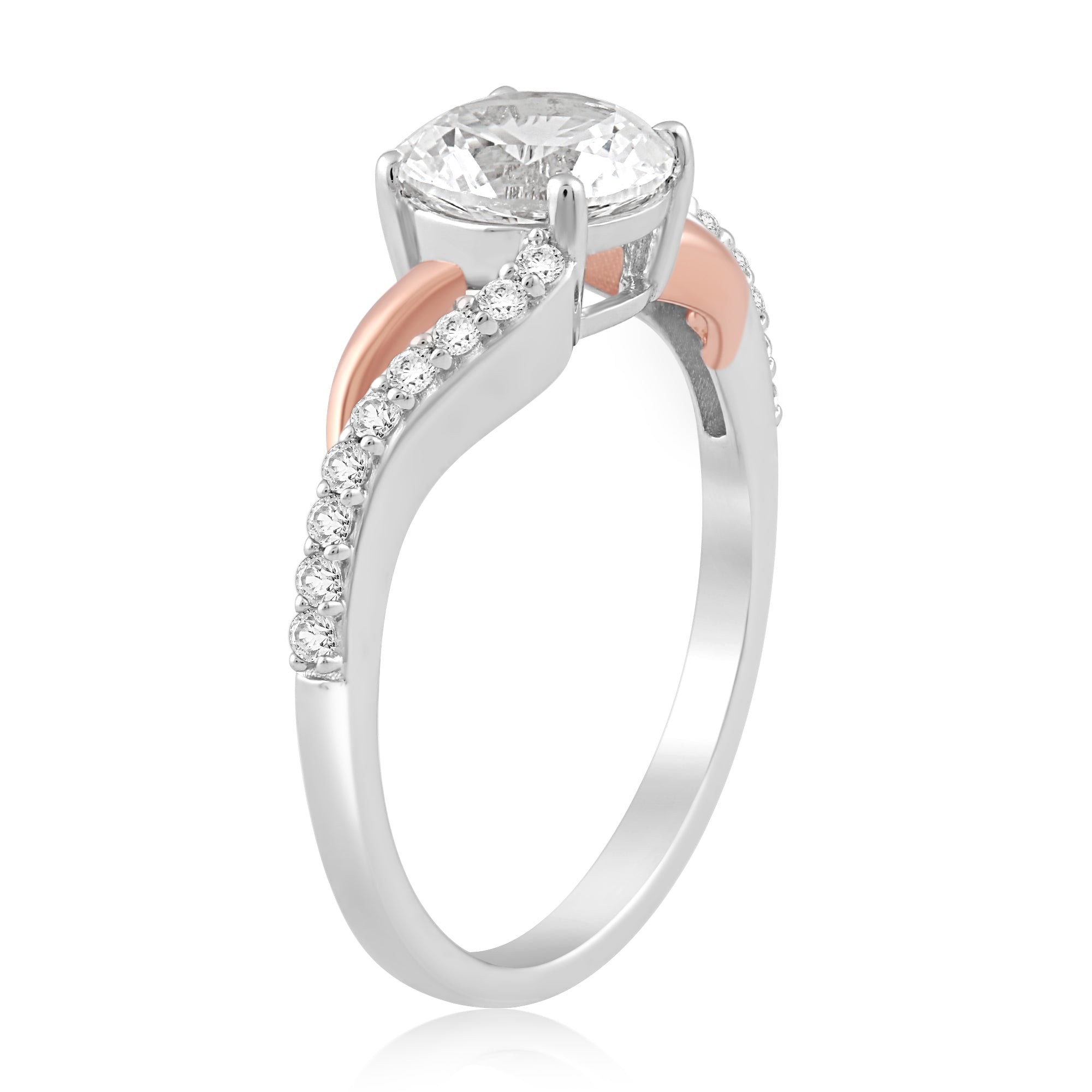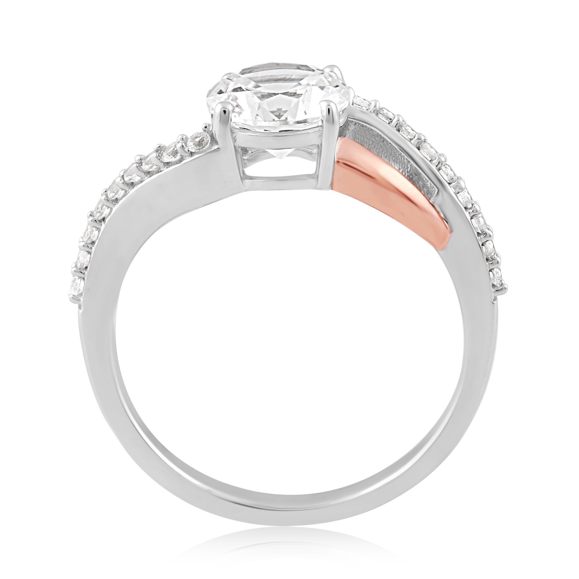Jewelili Rose Gold Over Sterling Silver With Created White Sapphire Engagement Ring