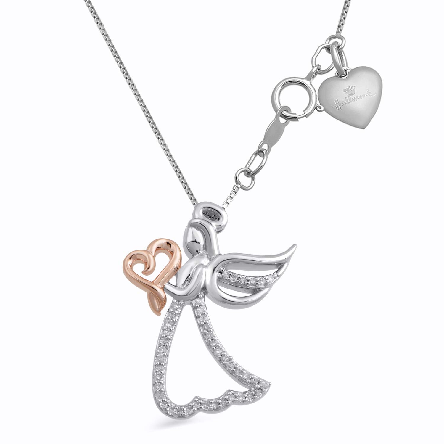 Jewelili Rose Gold Over Sterling Silver with 1/10 CTTW Natural White Diamonds Angel Heart Pendant Necklace