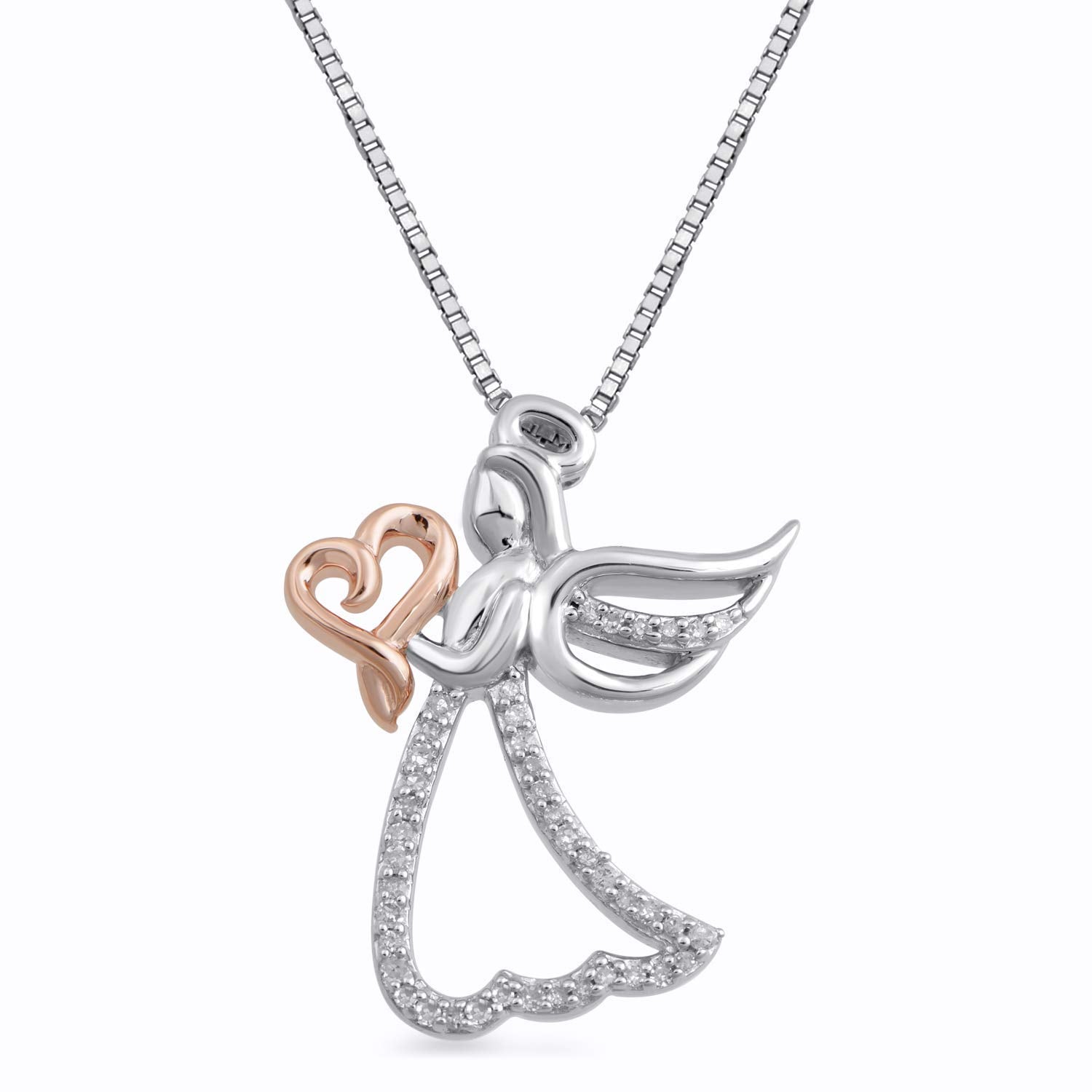 • Rose Gold Over Sterling Silver With 1/10 Cttw Natural White Diamonds Angel Heart Pendant Necklace