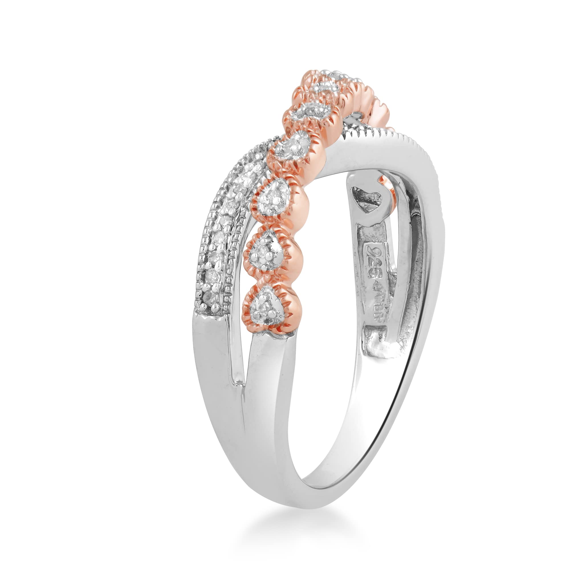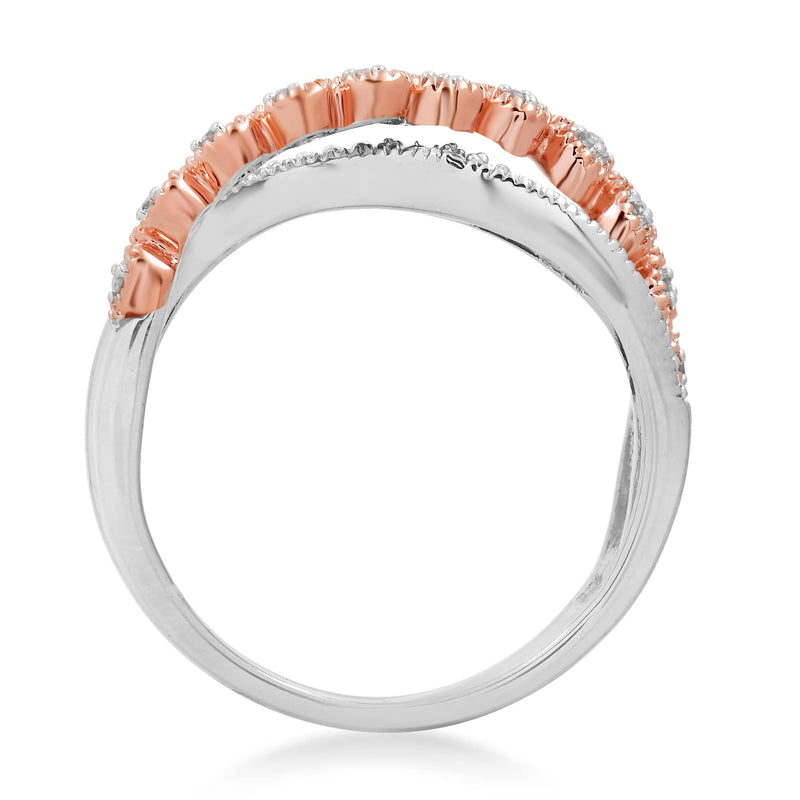• Rose Gold Over Sterling Silver With 1/10 Cttw Natural White Diamonds Bypass Ring