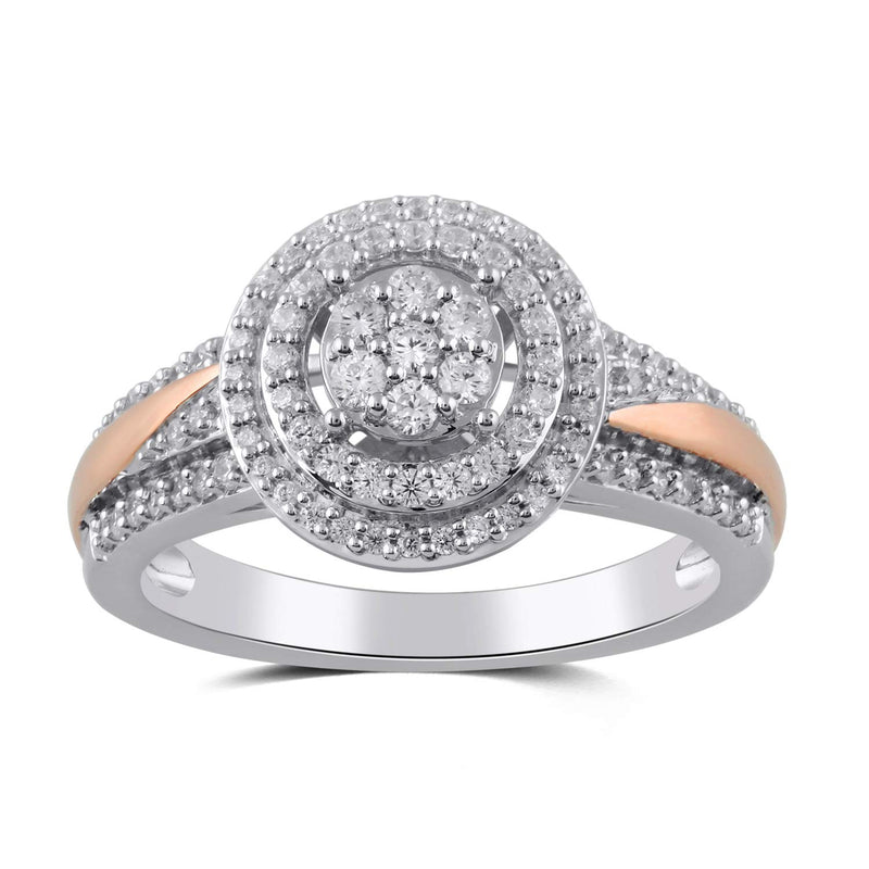 • Rose Gold over Sterling Silver With 1/2 Cttw White Round Diamonds Ring
