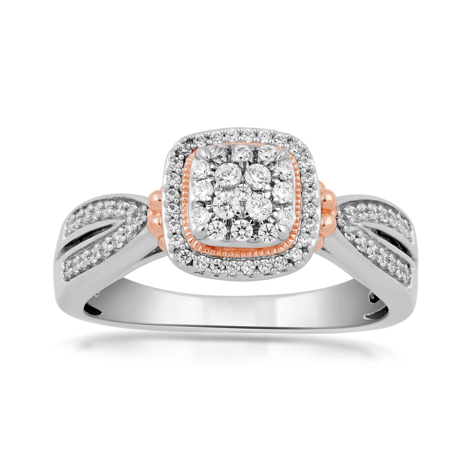 Jewelili Rose Gold Over Sterling Silver With 1/3 CTTW Natural White Diamonds Engagement Ring