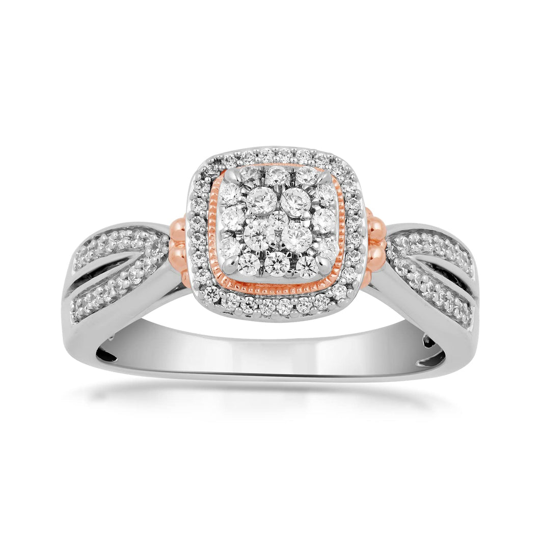 • Rose Gold Over Sterling Silver With 1/3 Cttw Natural White Diamonds Engagement Ring