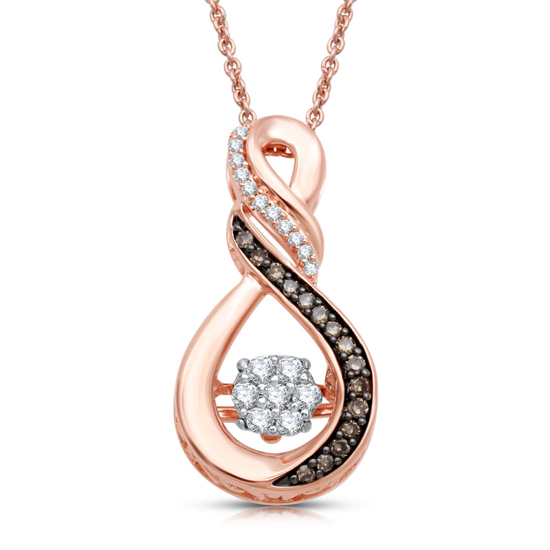 • Rose Gold Over Sterling Silver With 1/4 Cttw Champagne and Natural White Diamonds Pendant Necklace
