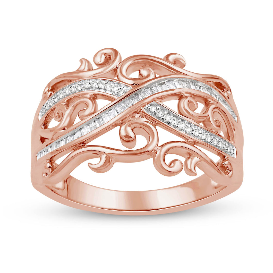 Jewelili Rose Gold over Sterling Silver With 1/4 CTTW Natural White Diamonds Anniversary Ring