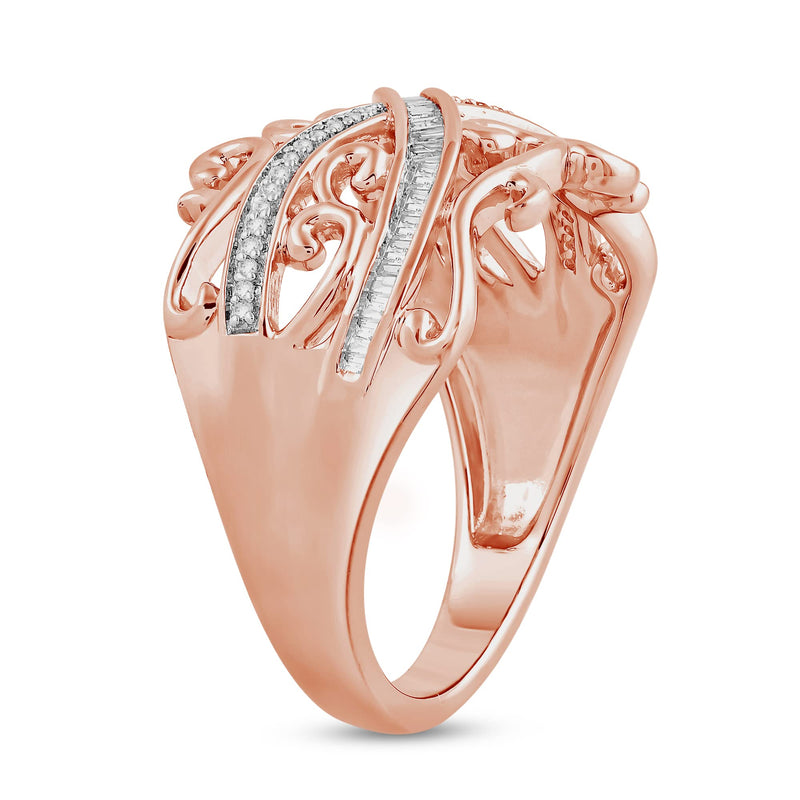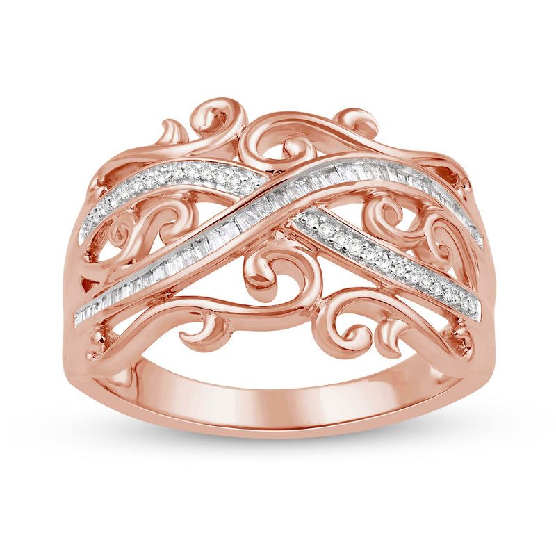 • Rose Gold over Sterling Silver With 1/4 Cttw Natural White Diamonds Anniversary Ring