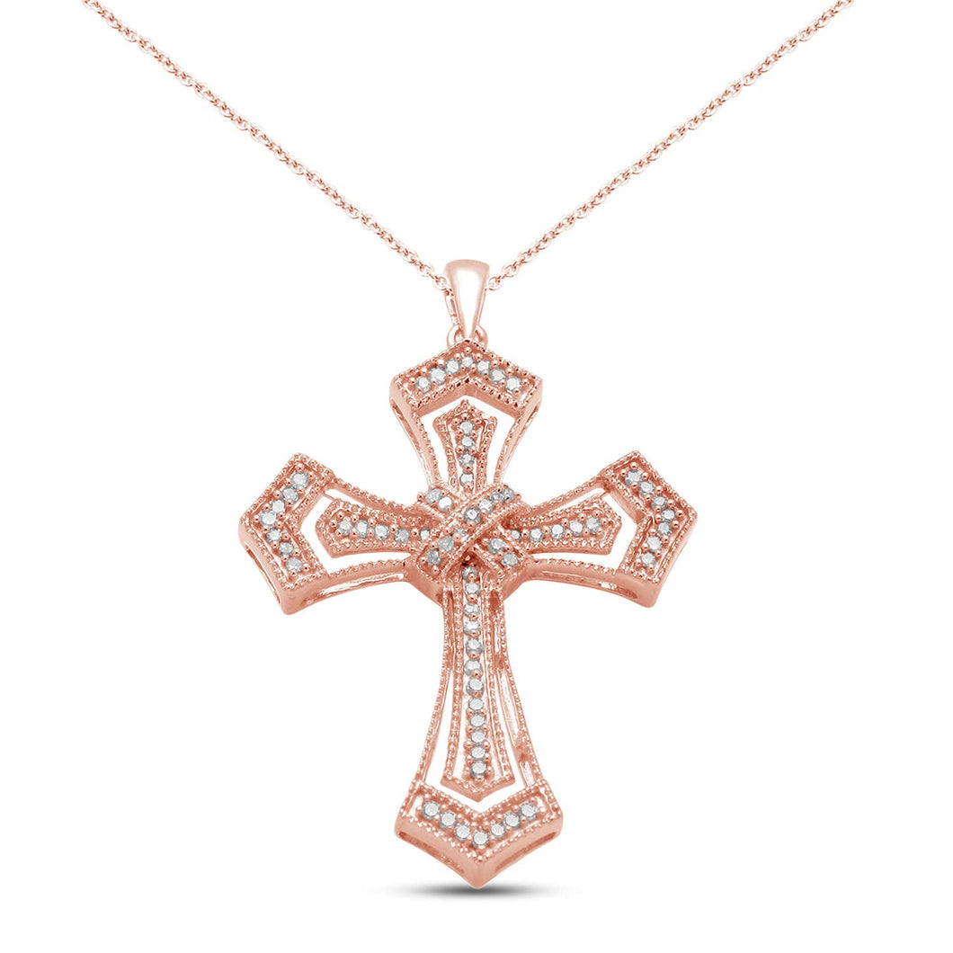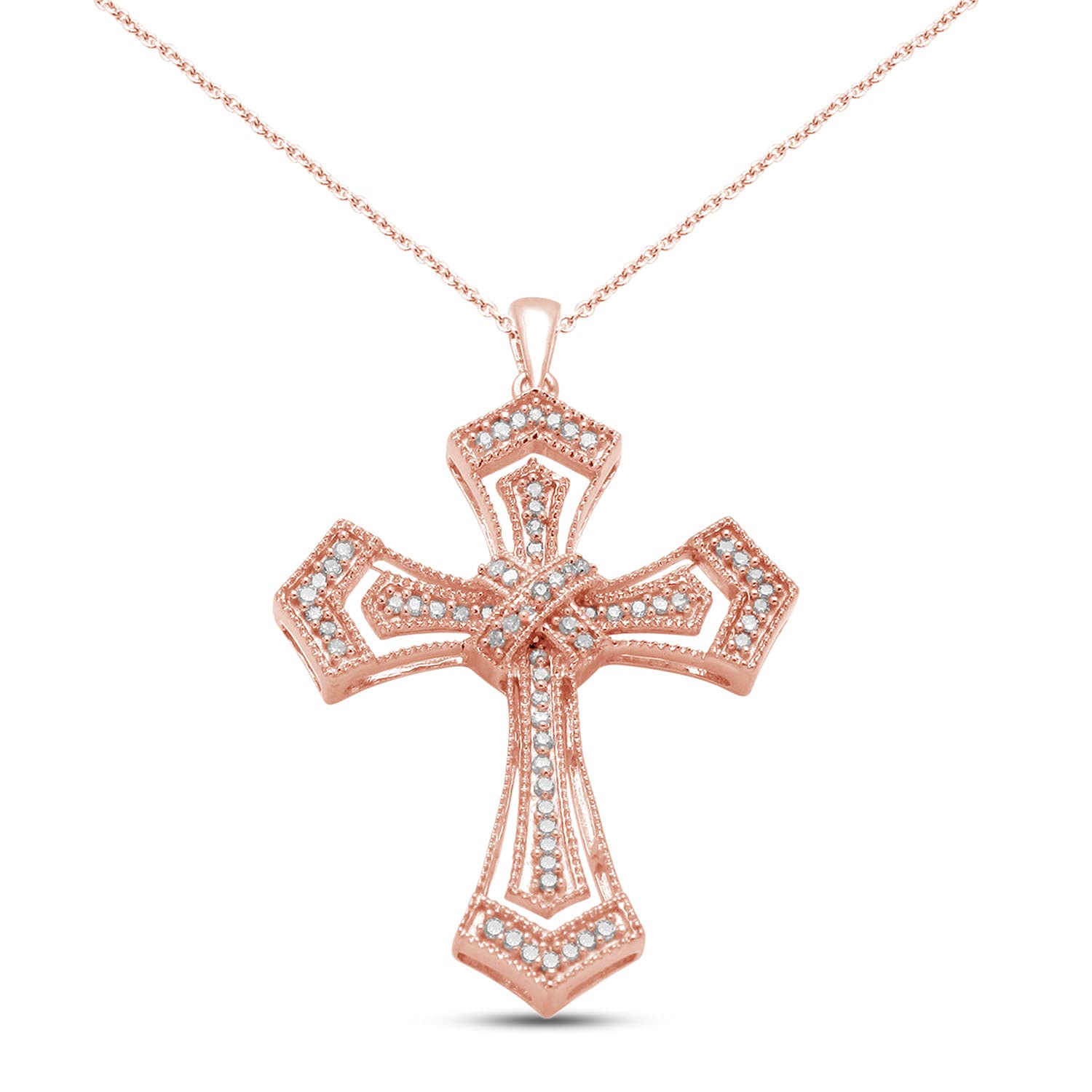 • Rose Gold Over Sterling Silver With 1/5 Cttw Natural White Diamond Cross Pendant Necklace.