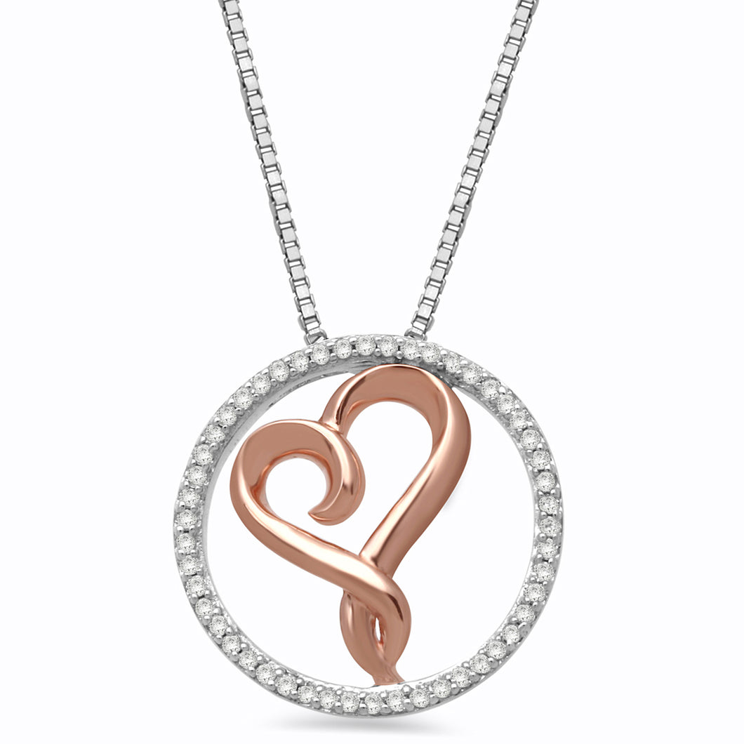 • Rose Gold Over Sterling Silver with 1/6 Cttw Diamonds Pendant Necklace
