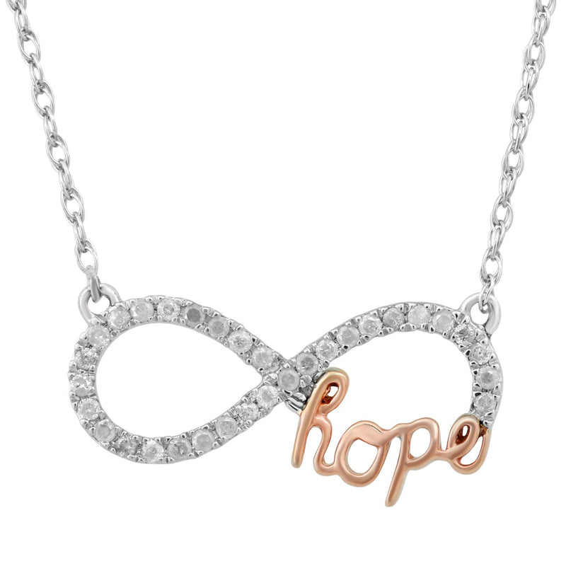 • Rose Gold Over Sterling Silver With 1/6 Cttw Natural White Diamond Infinity Hope Pendant Necklace