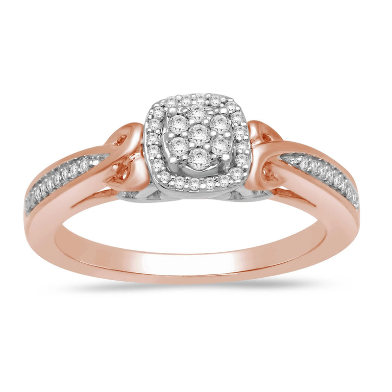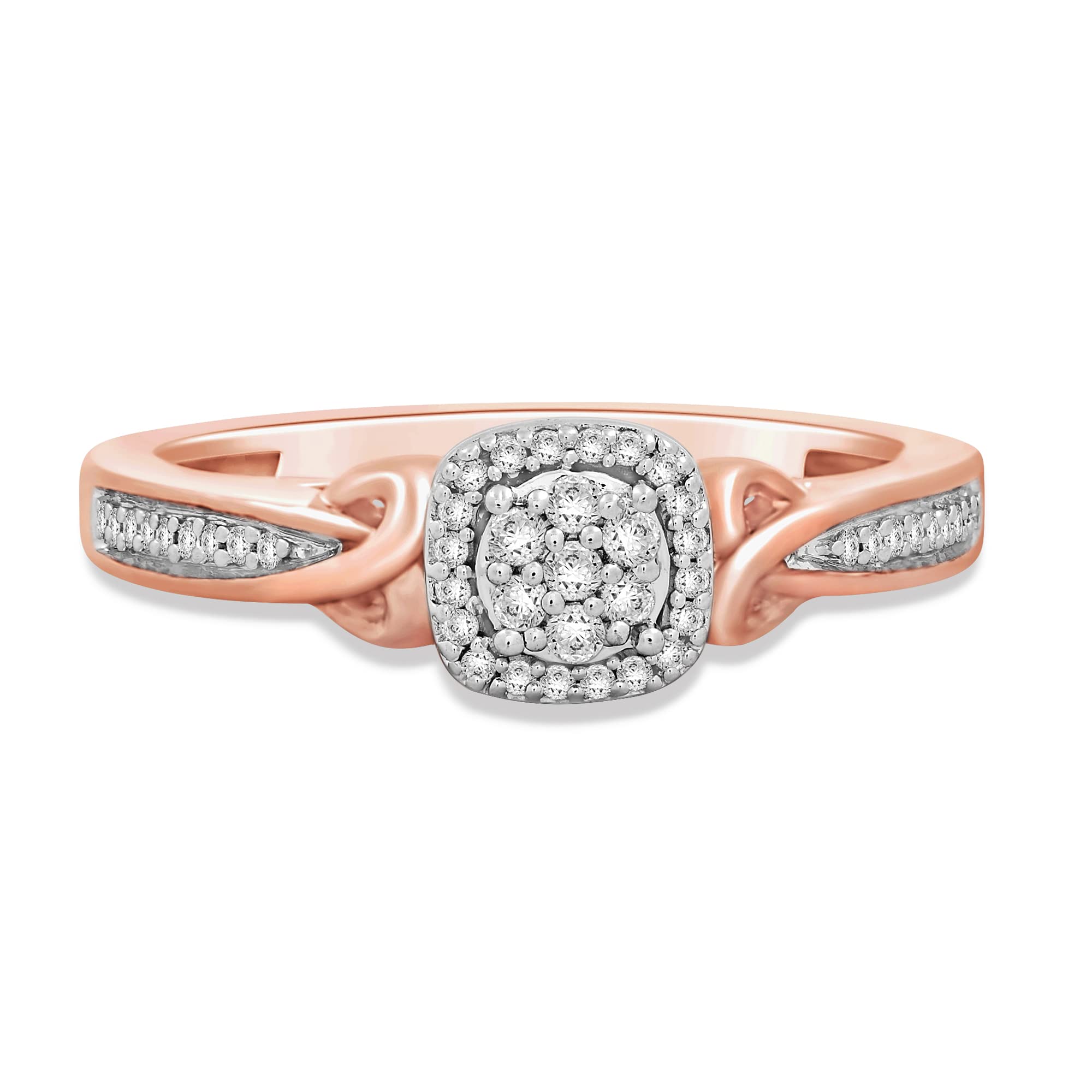 • Rose Gold over Sterling Silver with 1/6 Cttw Natural White Round Diamonds Heart Promise Ring