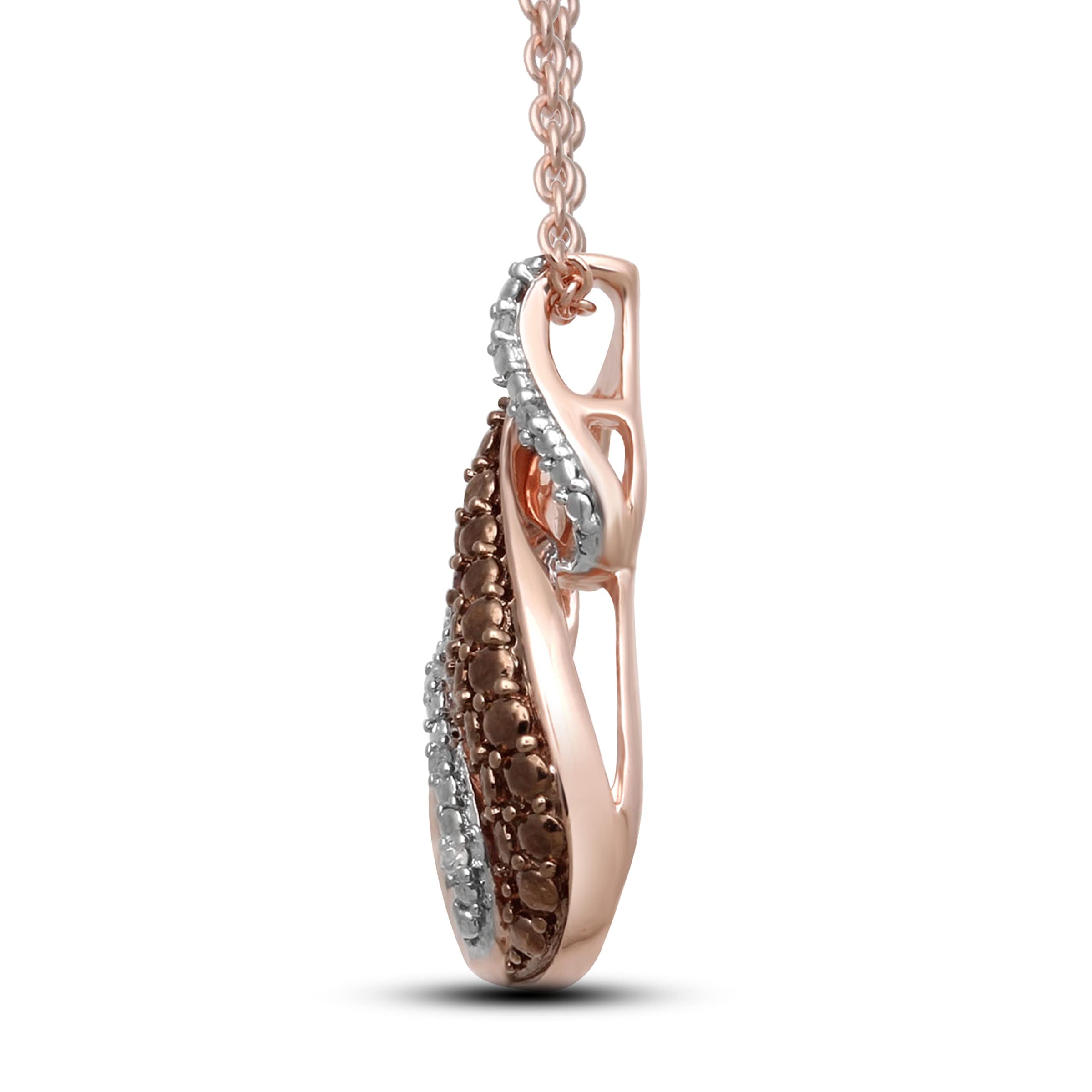 • Load image into Gallery viewer, Jewelili Twisted Pendant Necklace with Natural White and Cognac Diamonds in Rose Gold over Sterling Silver View 3