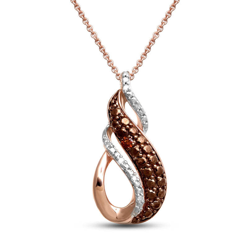 • Rose Gold over Sterling Silver With Natural White and Cognac Diamonds Twisted Pendant Necklace