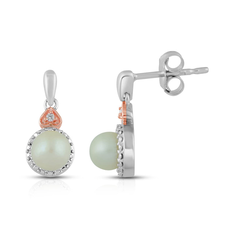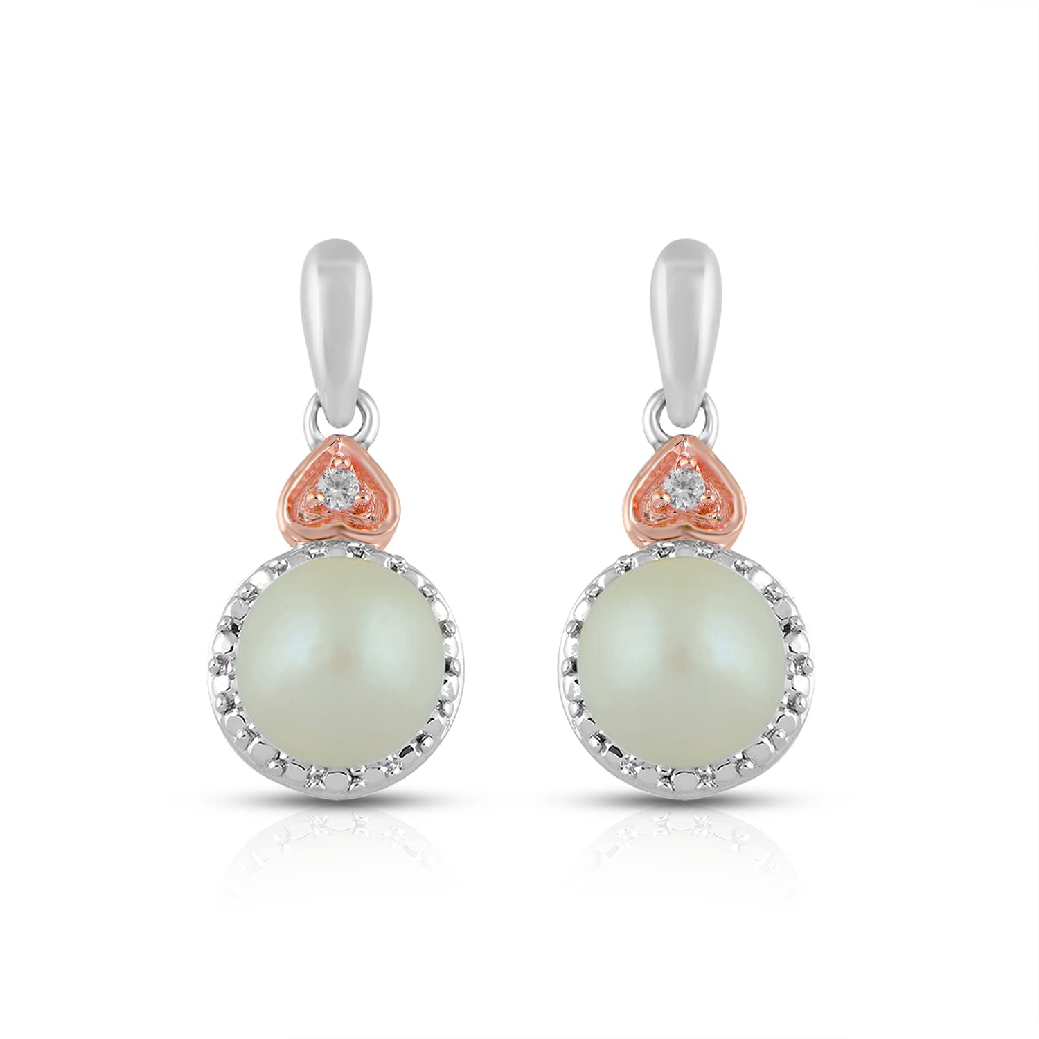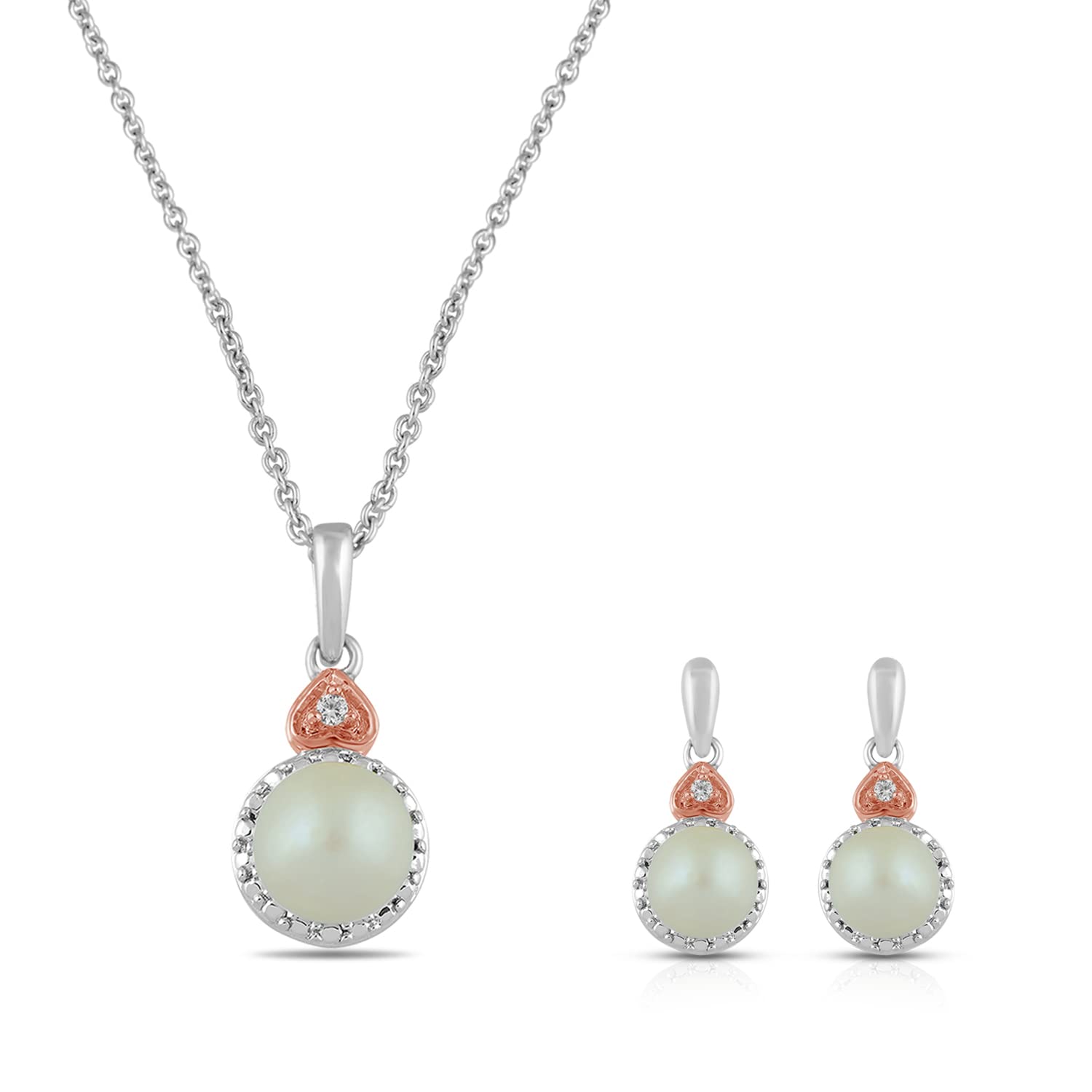 Jewelili Rose Gold over Sterling Silver With Pearl and Created White Sapphire Pendant Necklace Stud Earrings Jewelry Set