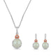 • Rose Gold over Sterling Silver With Pearl and Created White Sapphire Pendant Necklace Stud Earrings Jewelry Set