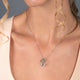 • Load image into Gallery viewer, Jewelili Sterling Silver 1/10 CTTW Diamonds Parents with Four Child Family Pendant Necklace