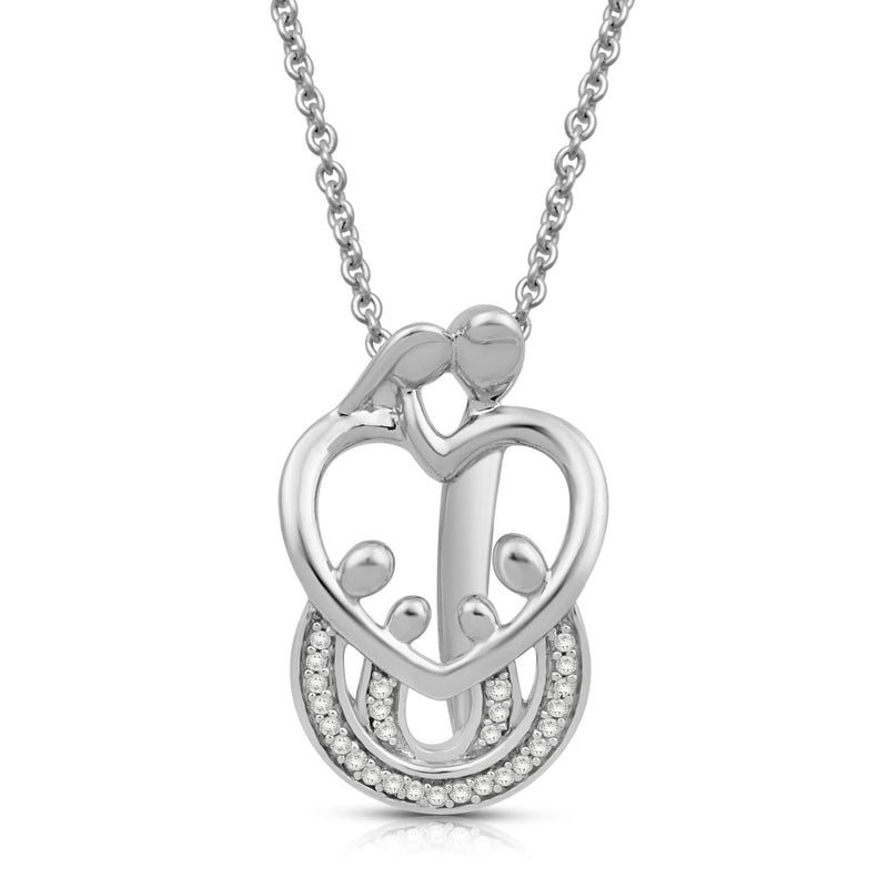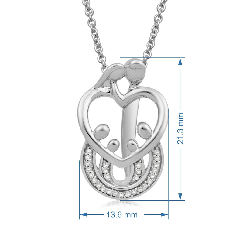 Jewelili Sterling Silver 1/10 CTTW Diamonds Parents with Four Child Family Pendant Necklace