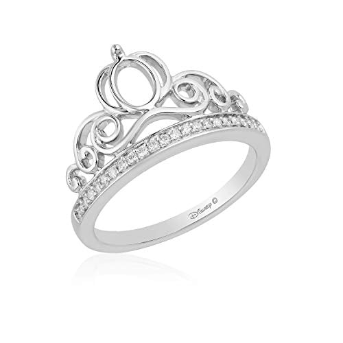 Enchanted Disney Fine Jewelry Jewelili Sterling Silver With 1/10 Cttw Natural White Diamond Cinderella Tiara Ring