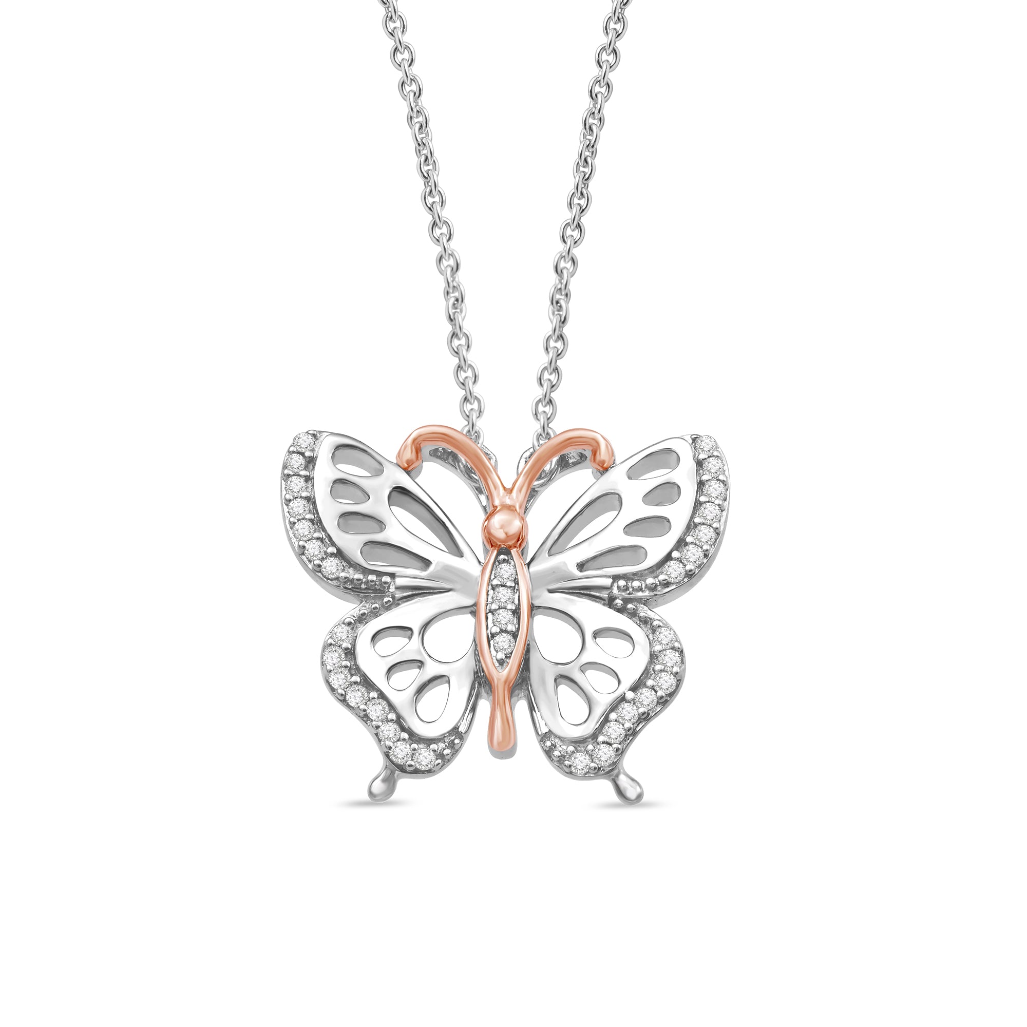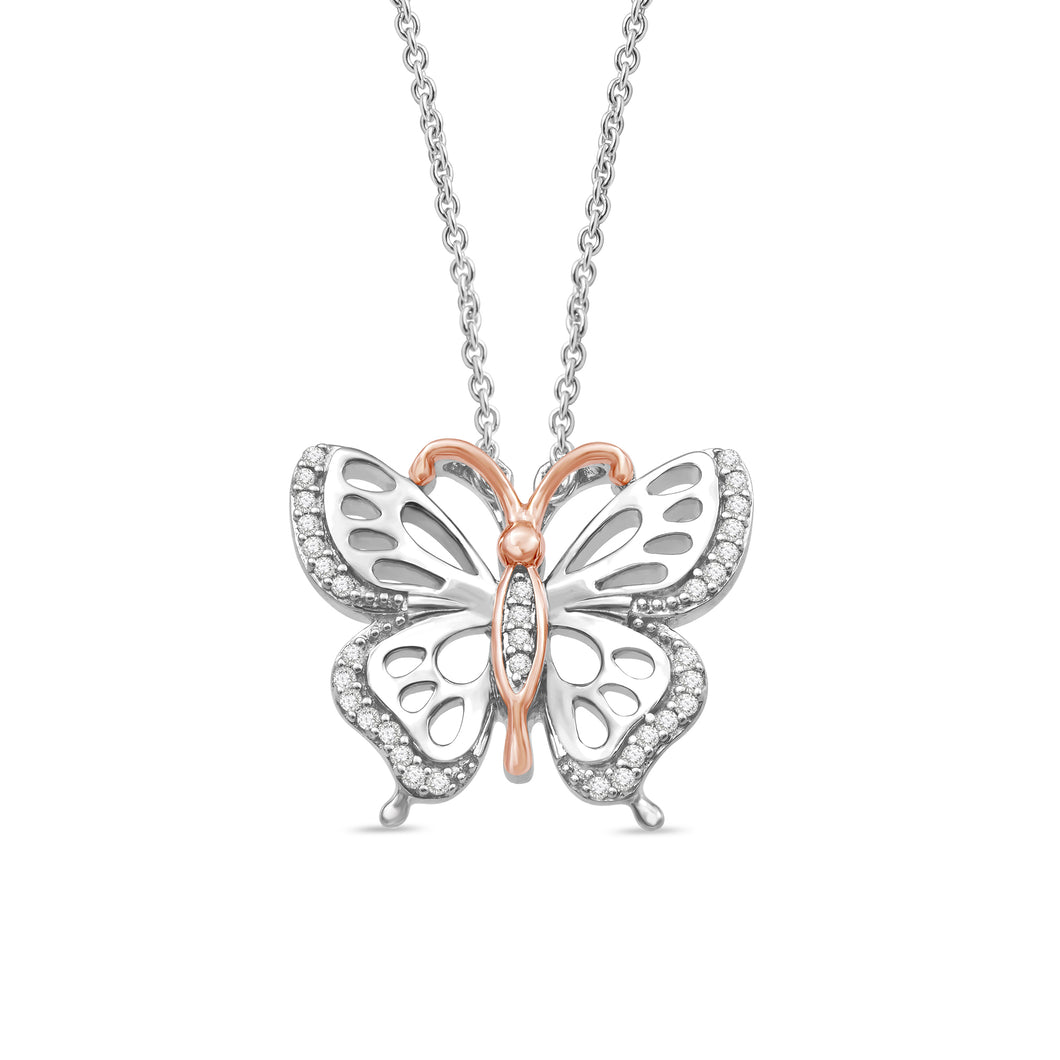 Adorn yourself with our Sterling Silver Butterfly Pendant Necklace. Featuring 1/10 Cttw Natural White Round Diamonds on an 18" Cable Chain. Delicate, charming, and effortlessly stylish, a perfect accessory for any occasion. Presented in an elegant box for a thoughtful gift.