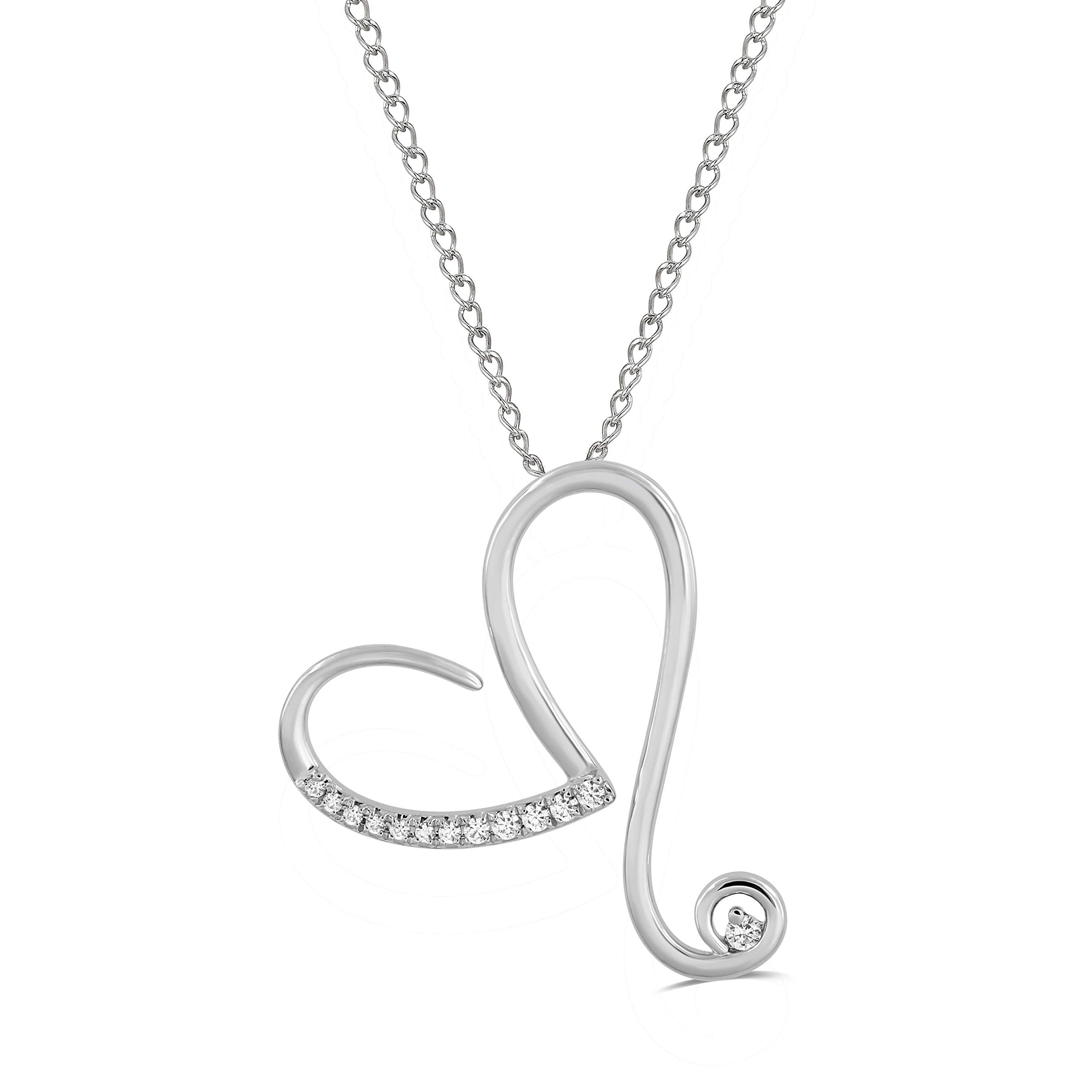 Jewelili Sterling Silver With 1/10 CTTW Natural Round Diamonds Heart Shape Pendant Necklace