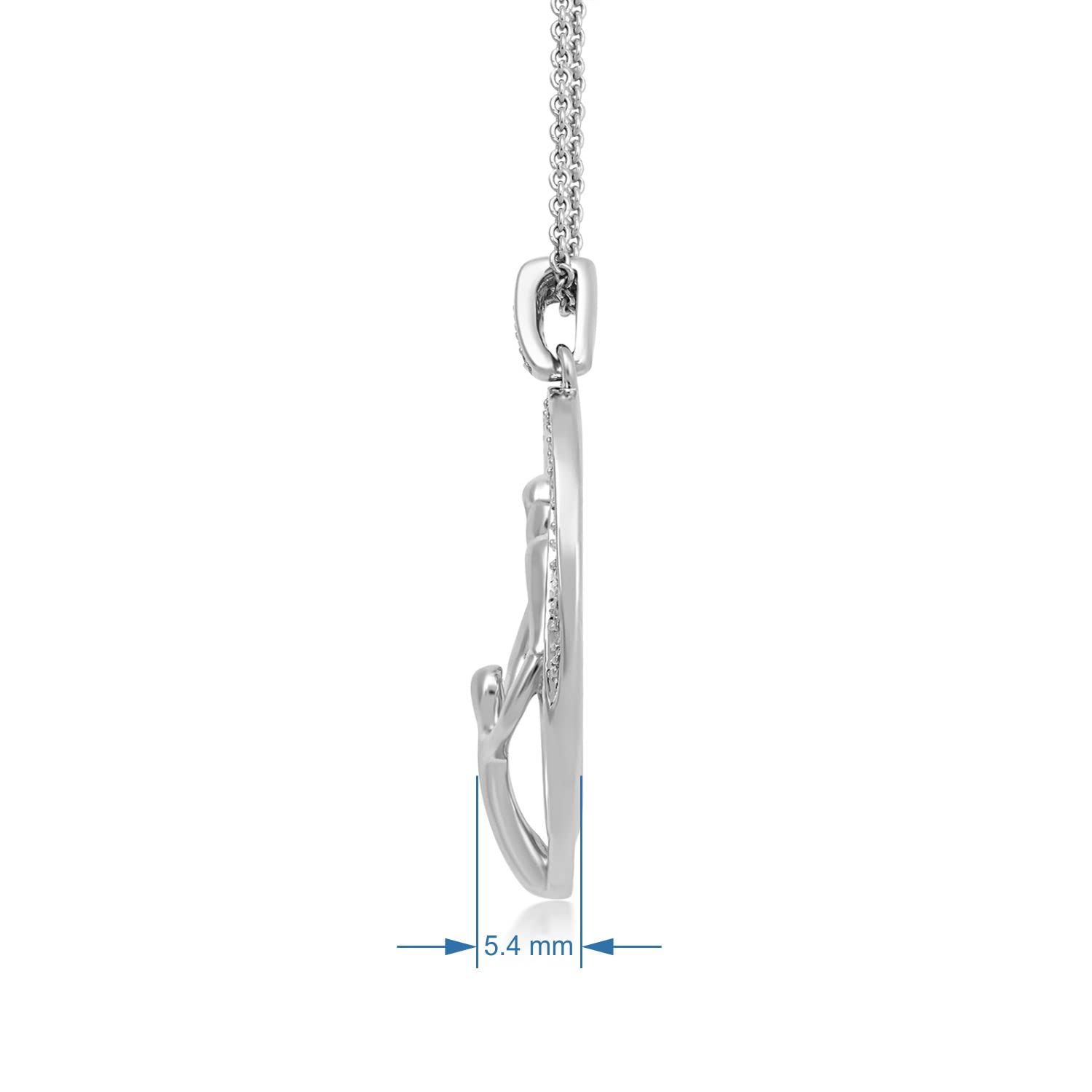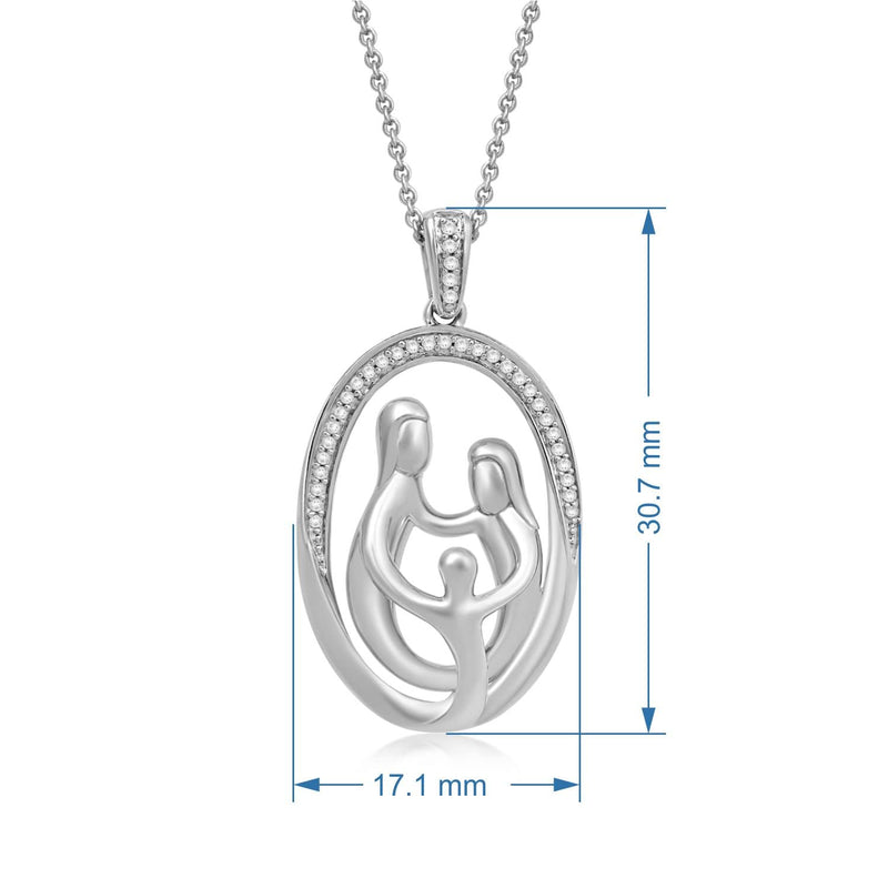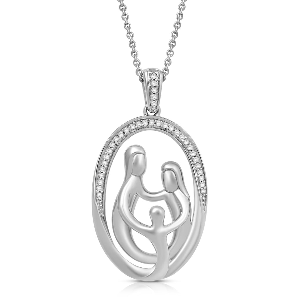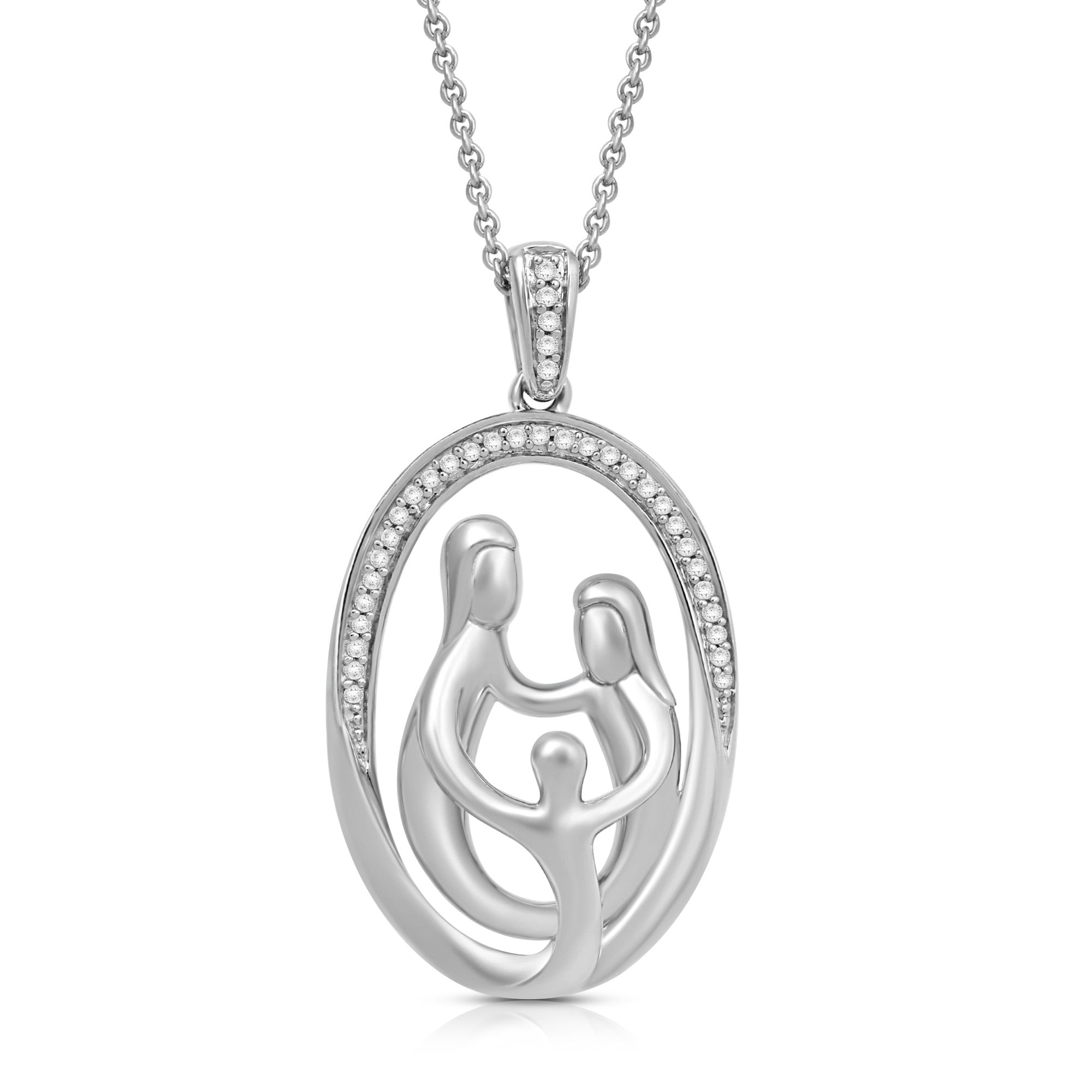 Jewelili Sterling Silver 1/10 CTTW Natural White Round Diamonds Parents with One Child Family Pendant Necklace