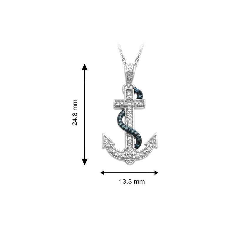 • Sterling Silver With 1/10 Cttw Round Treated Blue Diamond and White Diamonds Anchor Pendant Necklace