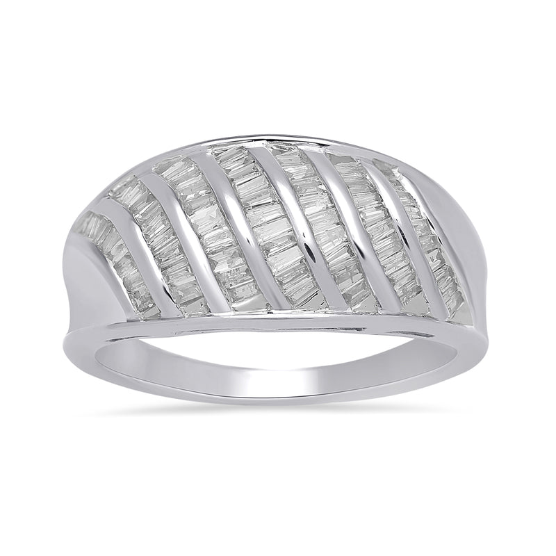 • Sterling silver 1/2 cttw natural white baguette shape diamond ring