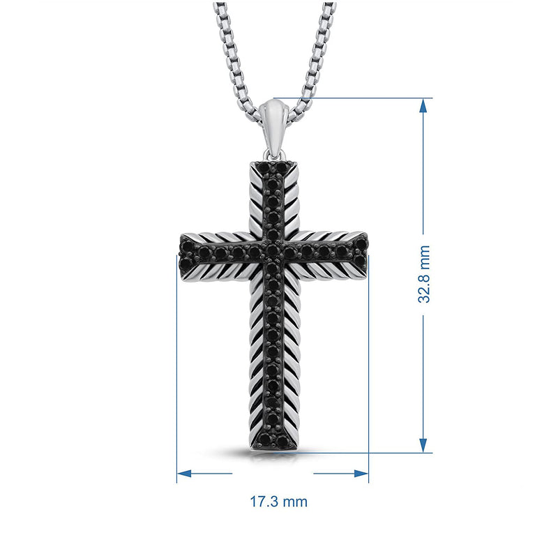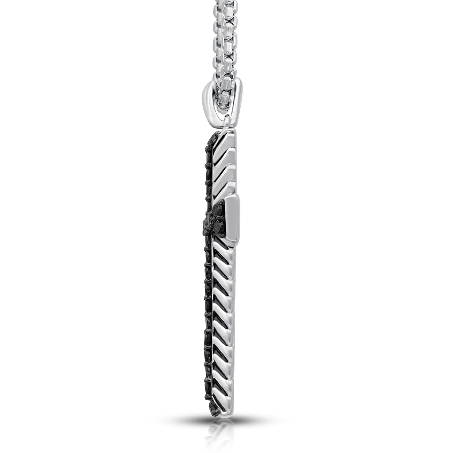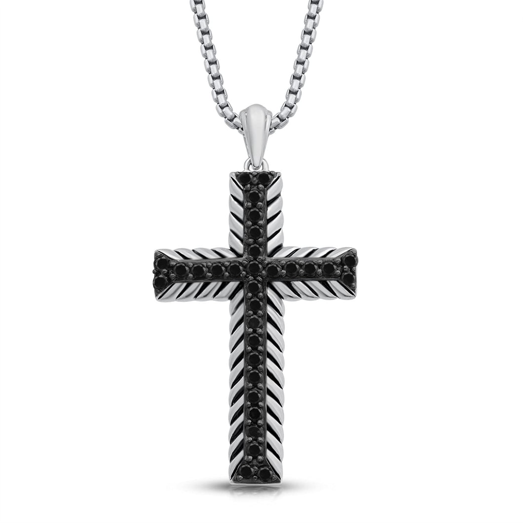 Jewelili Sterling Silver With 1/2 CTTW Treated Black Round Diamonds Men's Cross Pendant Necklace