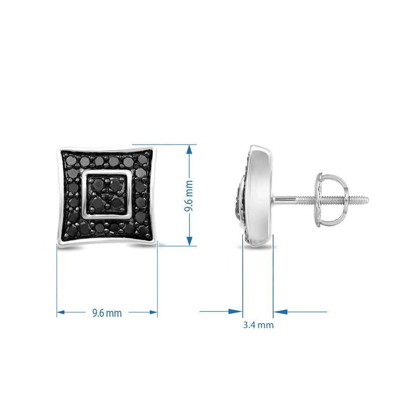 Just his style, these alluring Diamond stud earrings mark any occasion with rugged sophistication. Crafted in warm Sterling Silver, each eye-catching design features a composite of shimmering Black Diamonds set in double squared-frame. Dazzling with 1/2 cttw. of Diamonds and a bright polished shine, these handsome earrings secure comfortably.