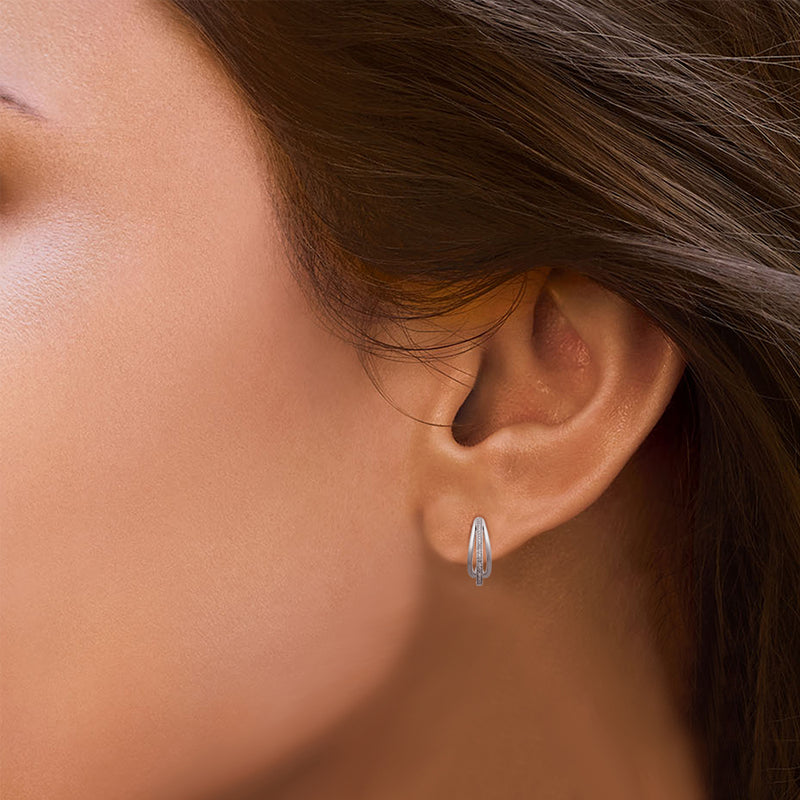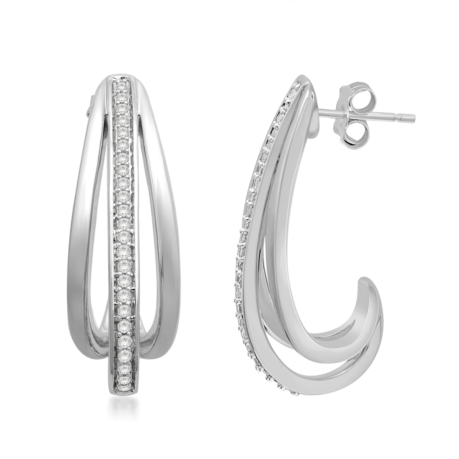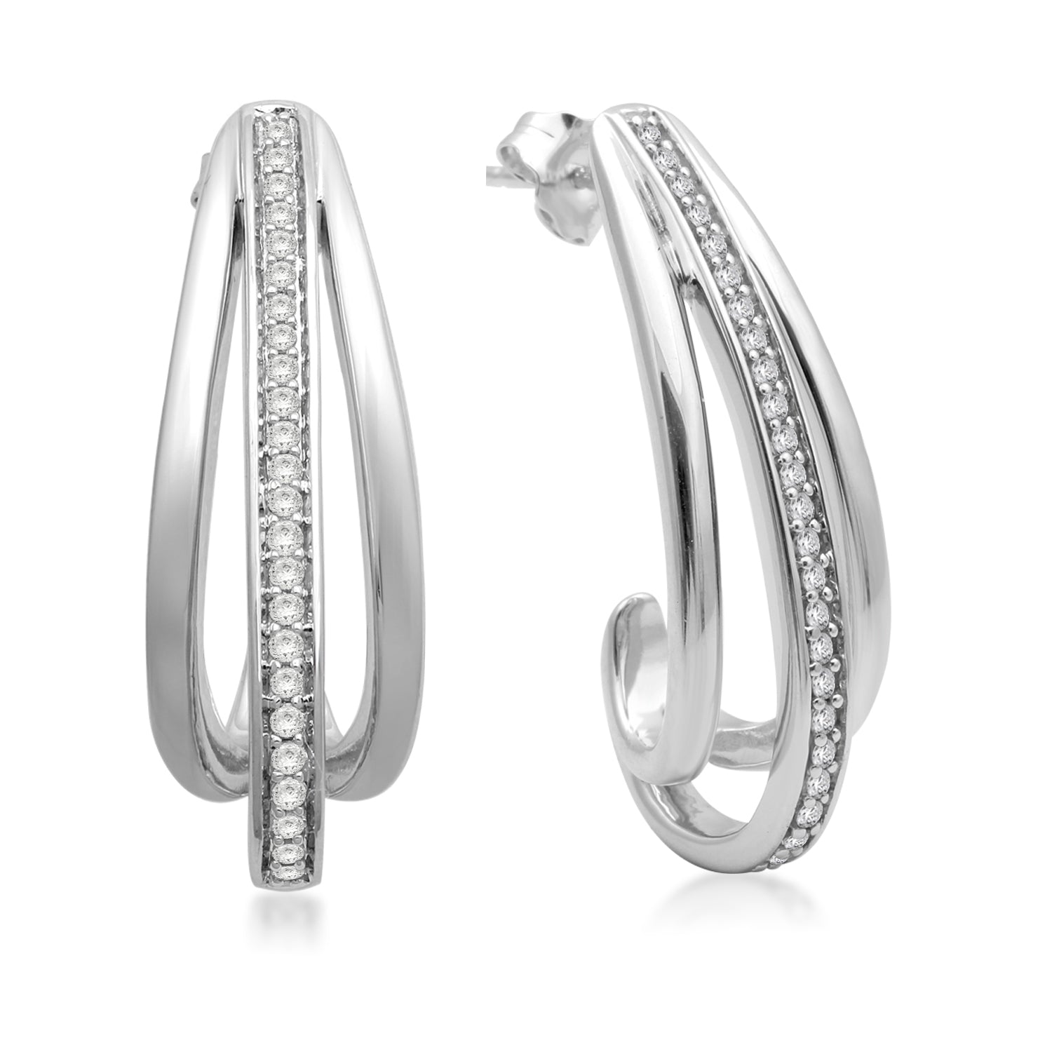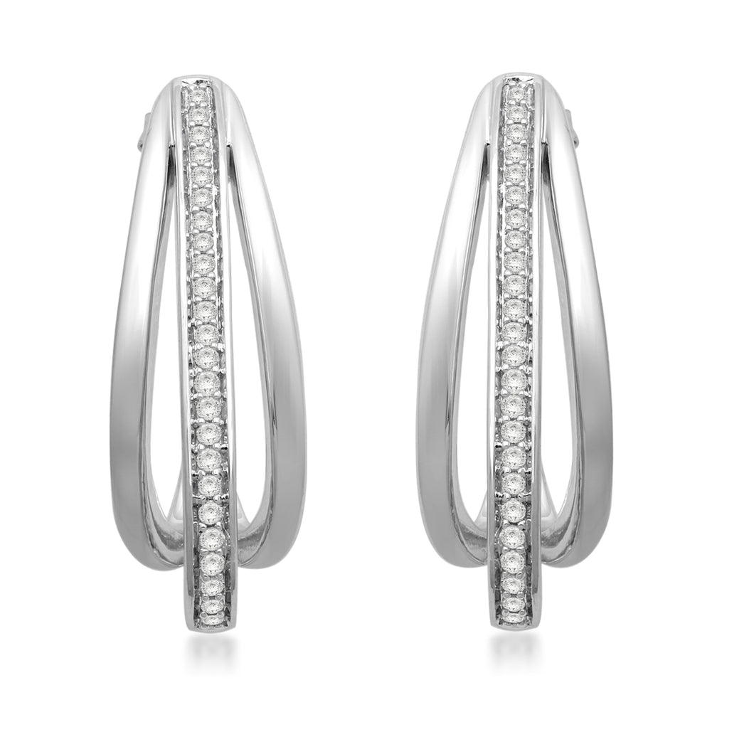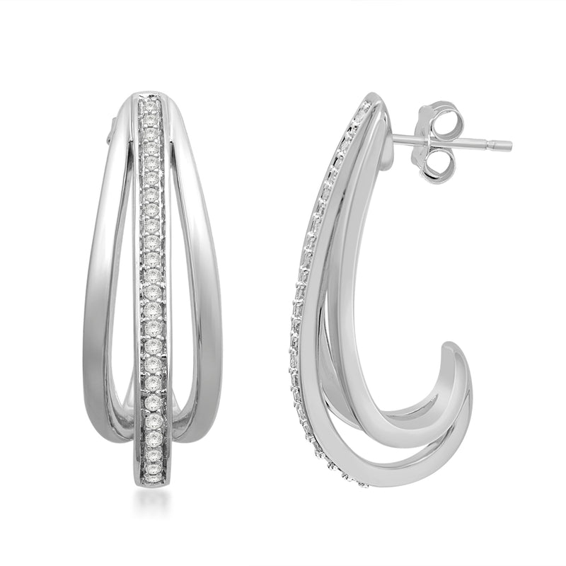 Details: Sterling Silver With 1/3 Cttw Round White Diamond J-Hoop Earrings