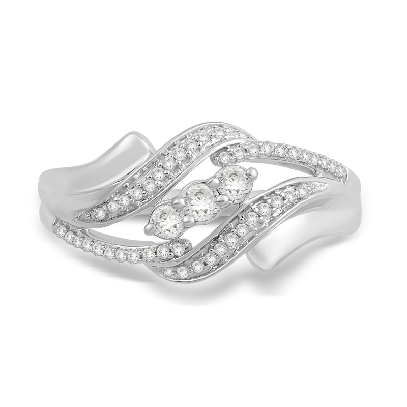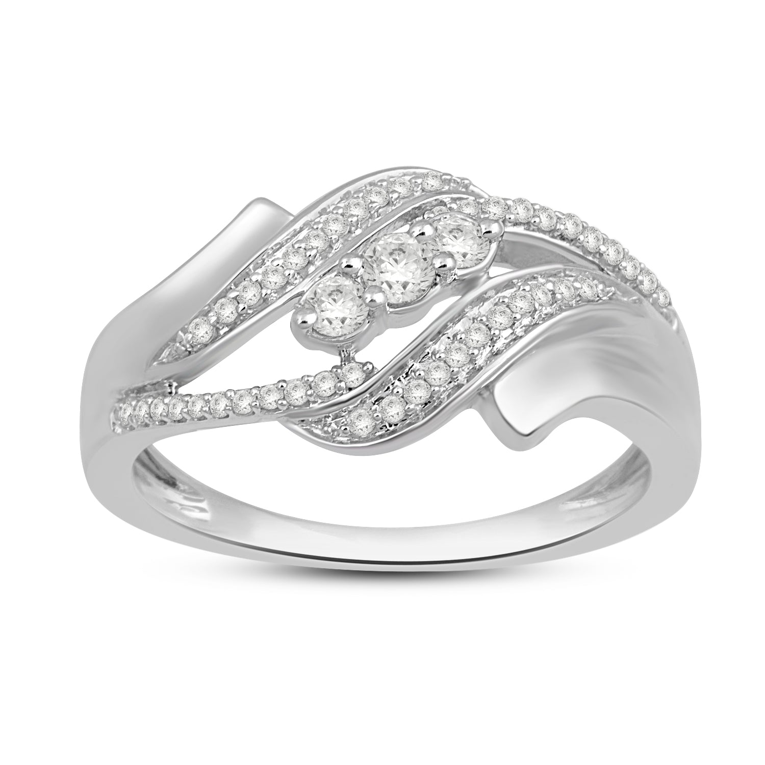 Jewelili Sterling Silver 1/4 CTTW Natural White Round Diamonds Ring