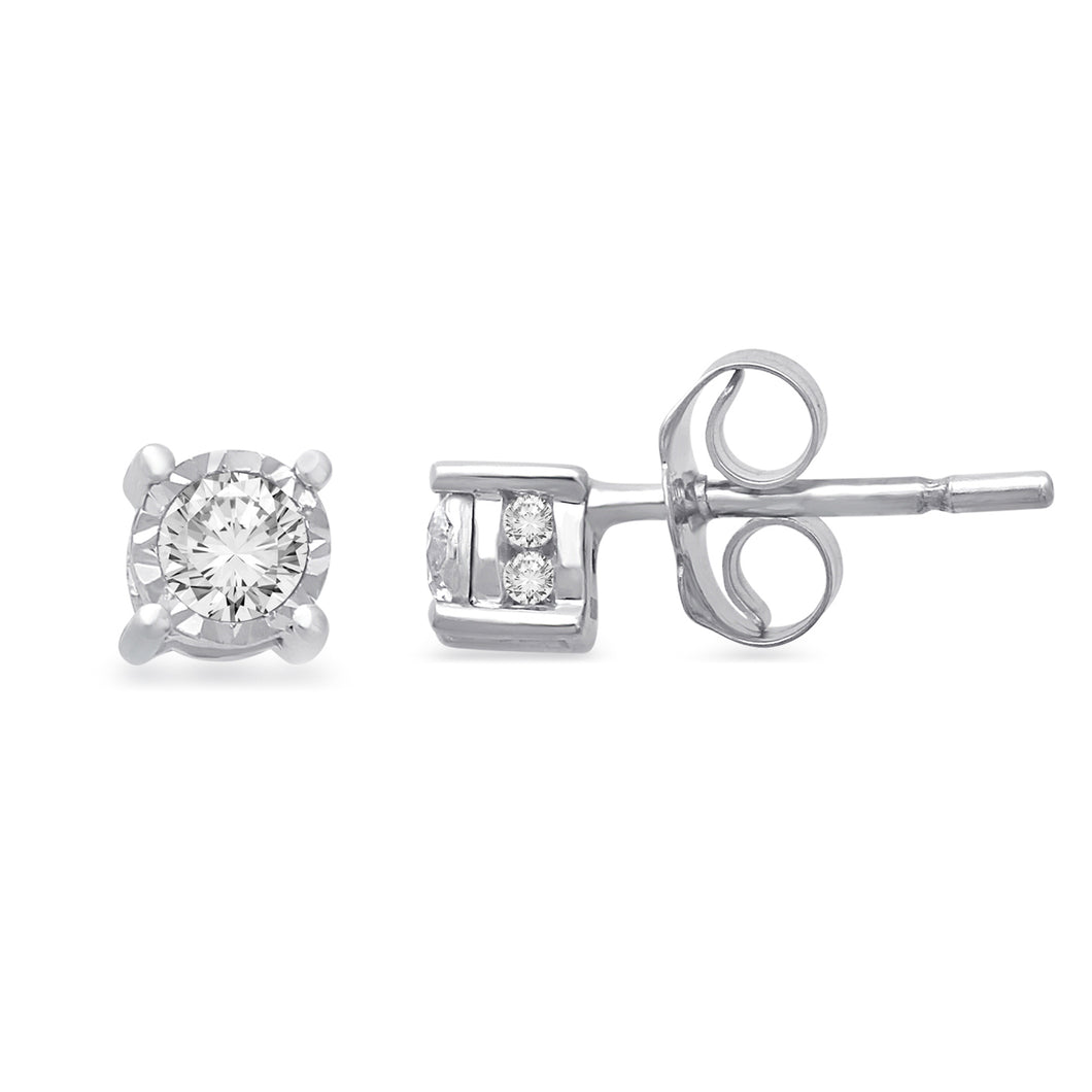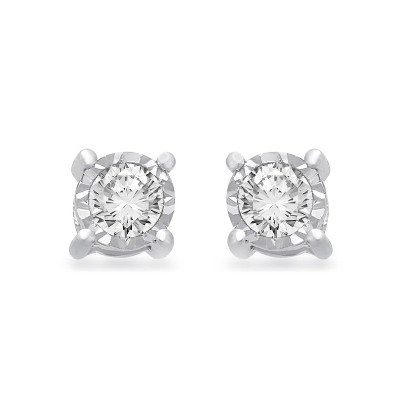 • Sterling silver with 1/4 Cttw white diamond stud earrings