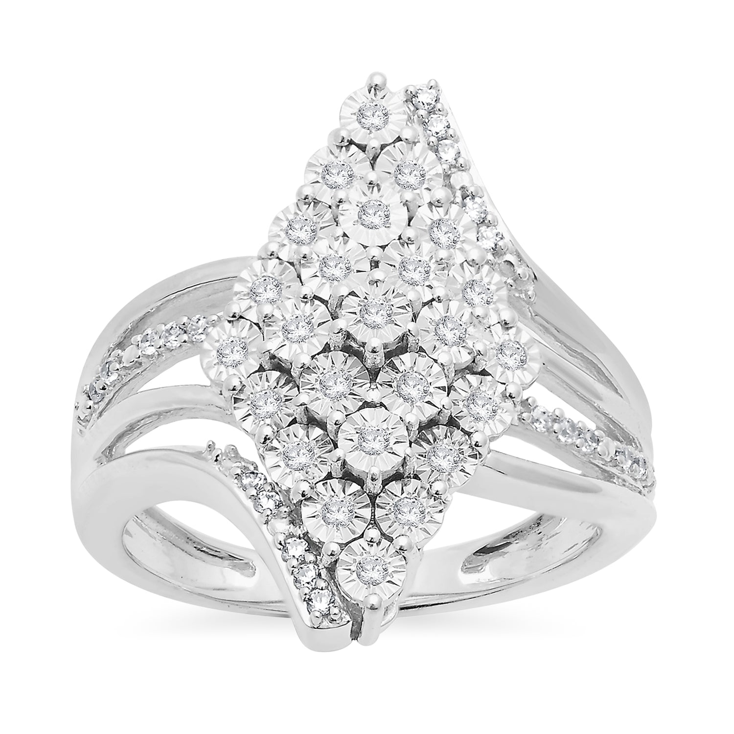 • Waterfall Sterling Silver Ring set with 1/4cttw Round Natural White Diamonds.