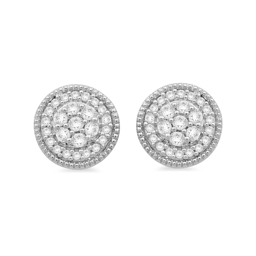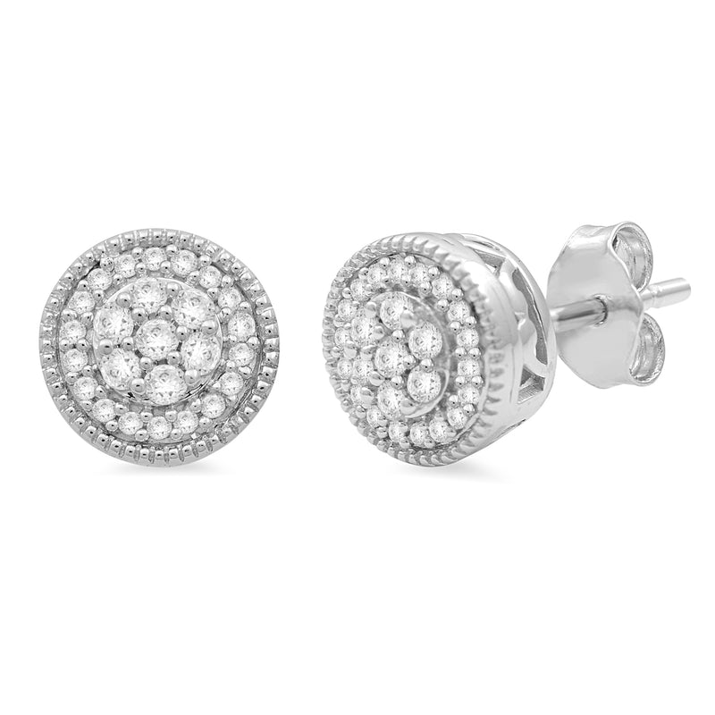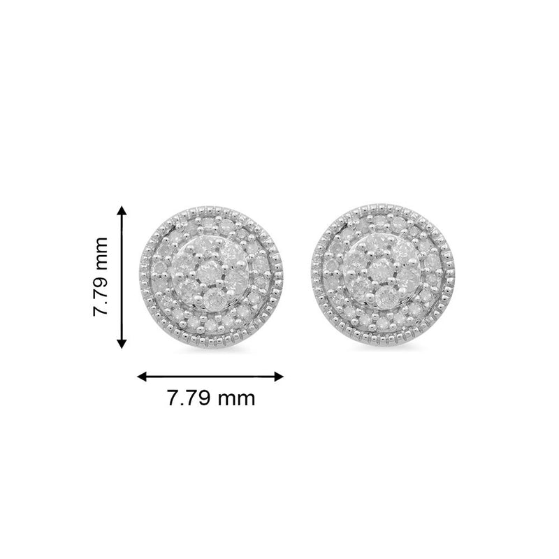 Jewelili Sterling Silver With 1/4 CTTW White Diamonds Cluster Stud Earrings