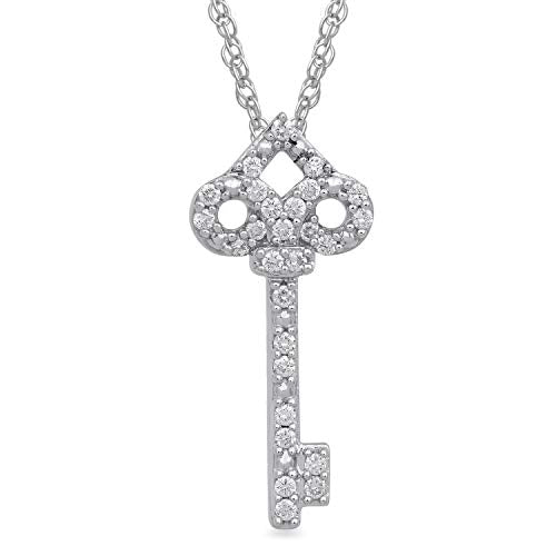 Jewelili Sterling Silver With 1/5 CTTW Round Natural Diamonds Key Shape Pendant Necklace