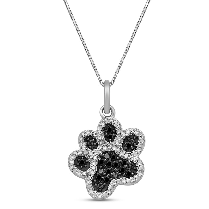 Jewelili Sterling Silver 1/5 CTTW Treated Black and Natural White Round Diamonds Dog Paw Pendant Necklace