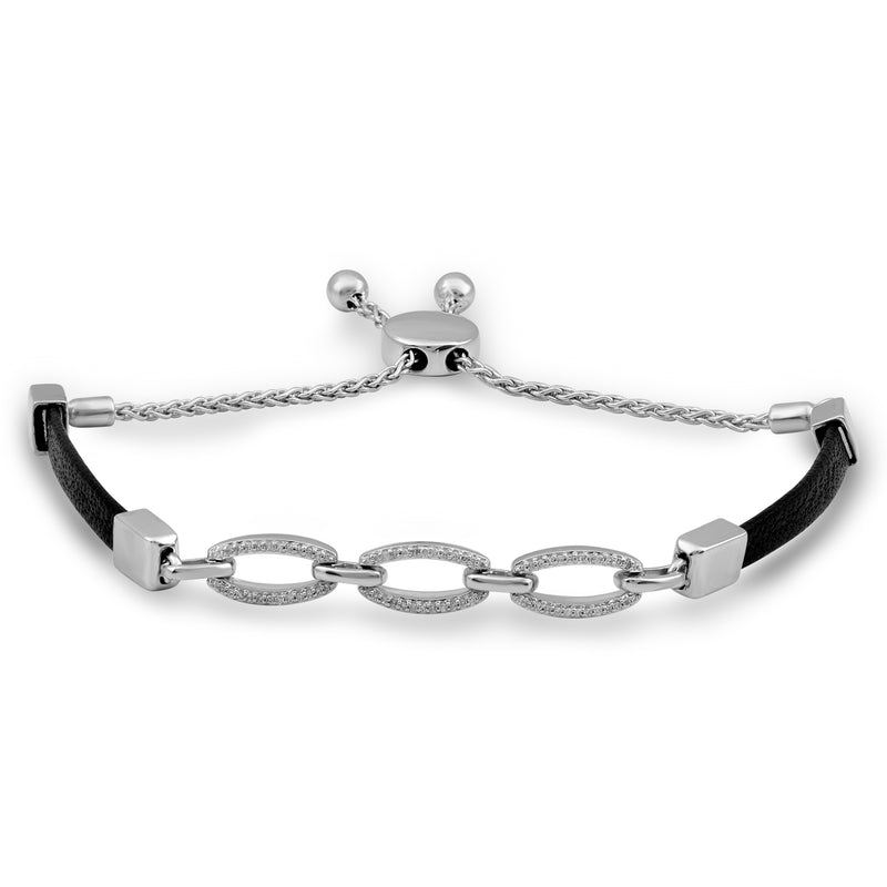 Jewelili Sterling Silver With 1/6 CTTW Natural Round White Diamonds Bolo Bracelet