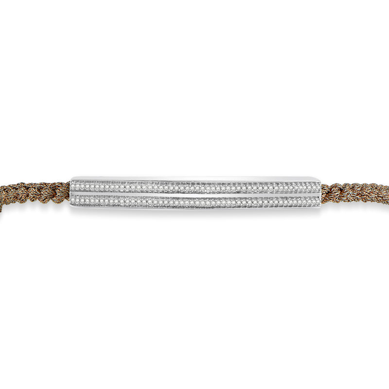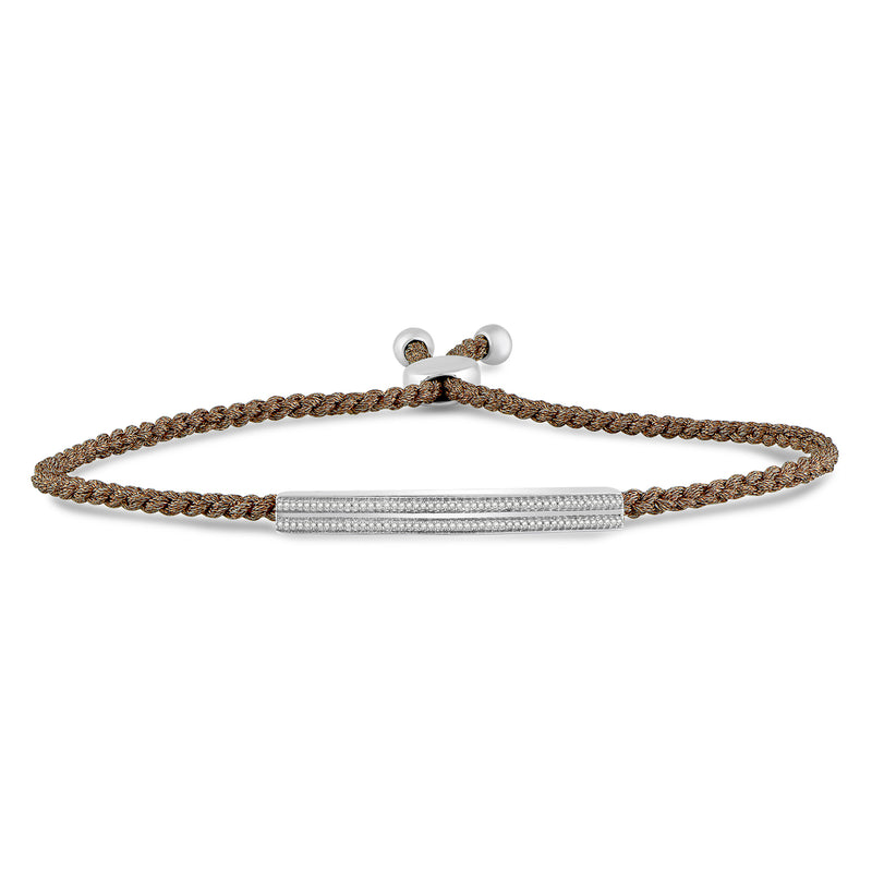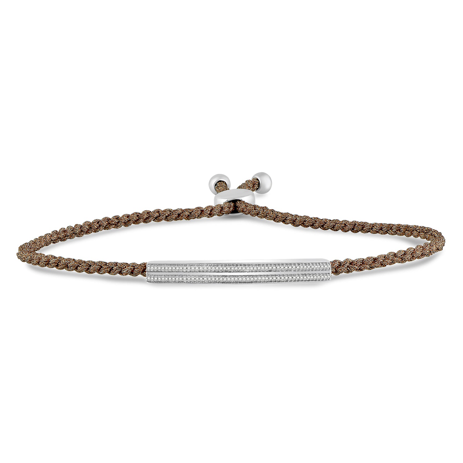 Jewelili Sterling Silver With 1/6 Cttw Natural Round White Diamonds Metallic Cord Bracelet