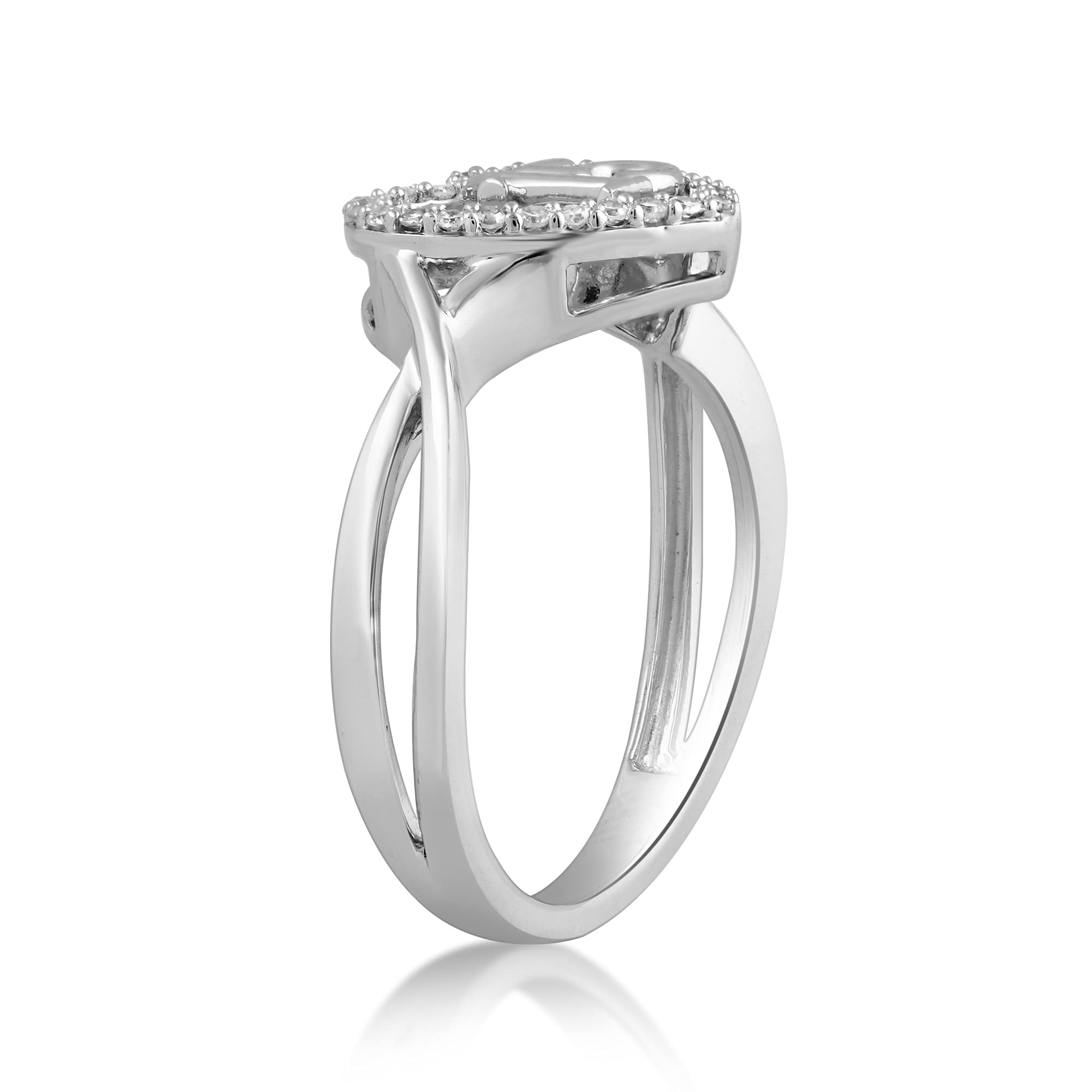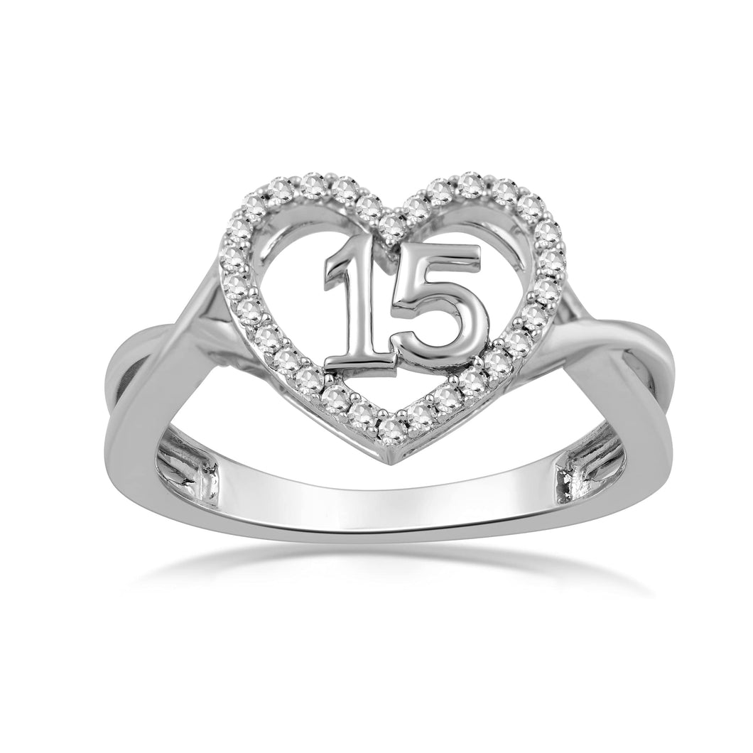 Jewelili Sterling Silver 1/6 CTTW Natural White Round Diamonds Heart 15 Quiaceanera Ring