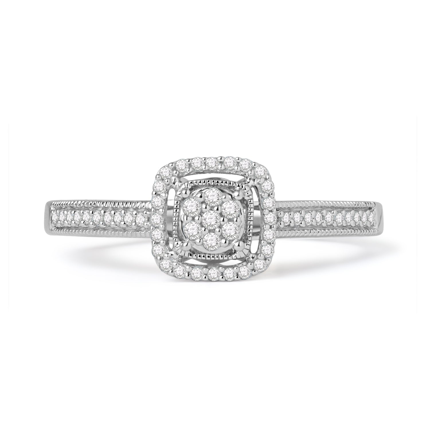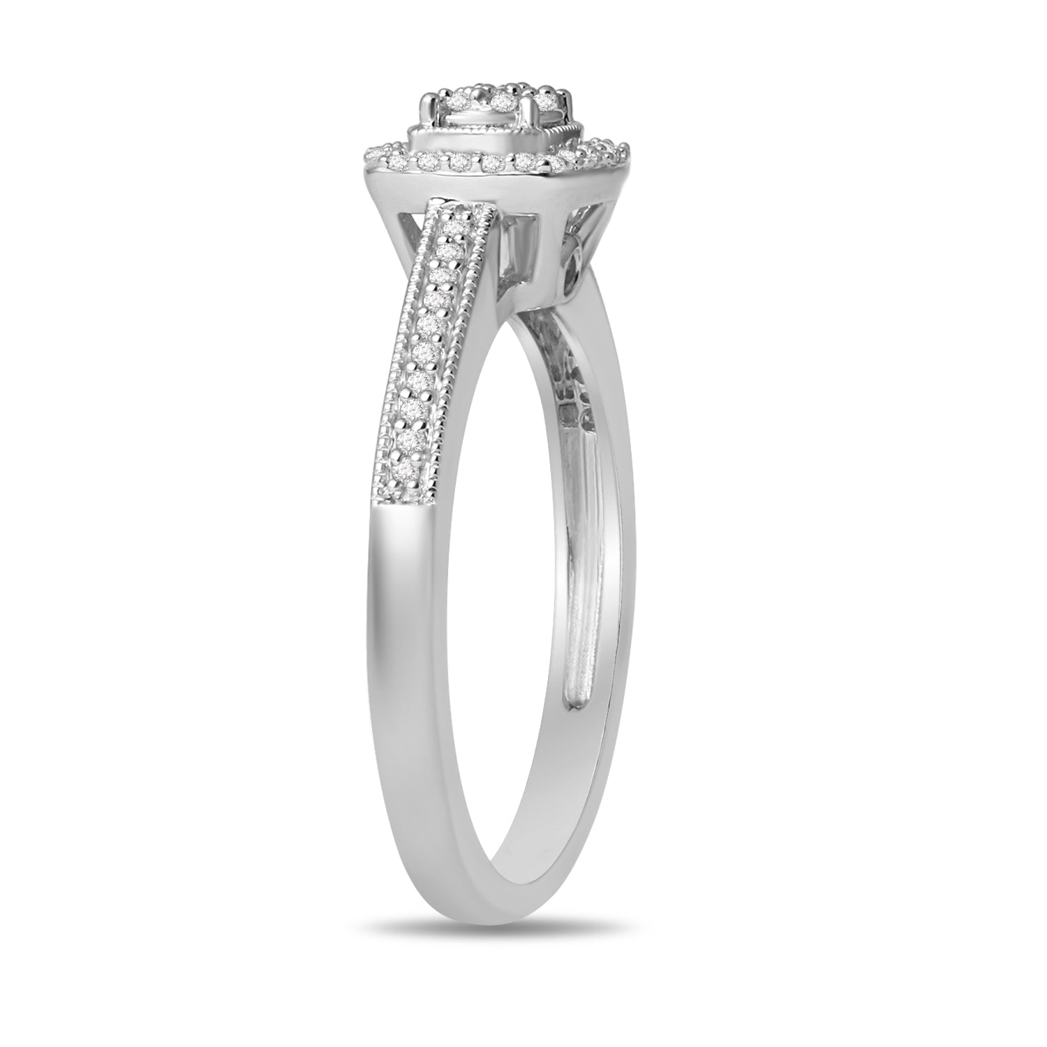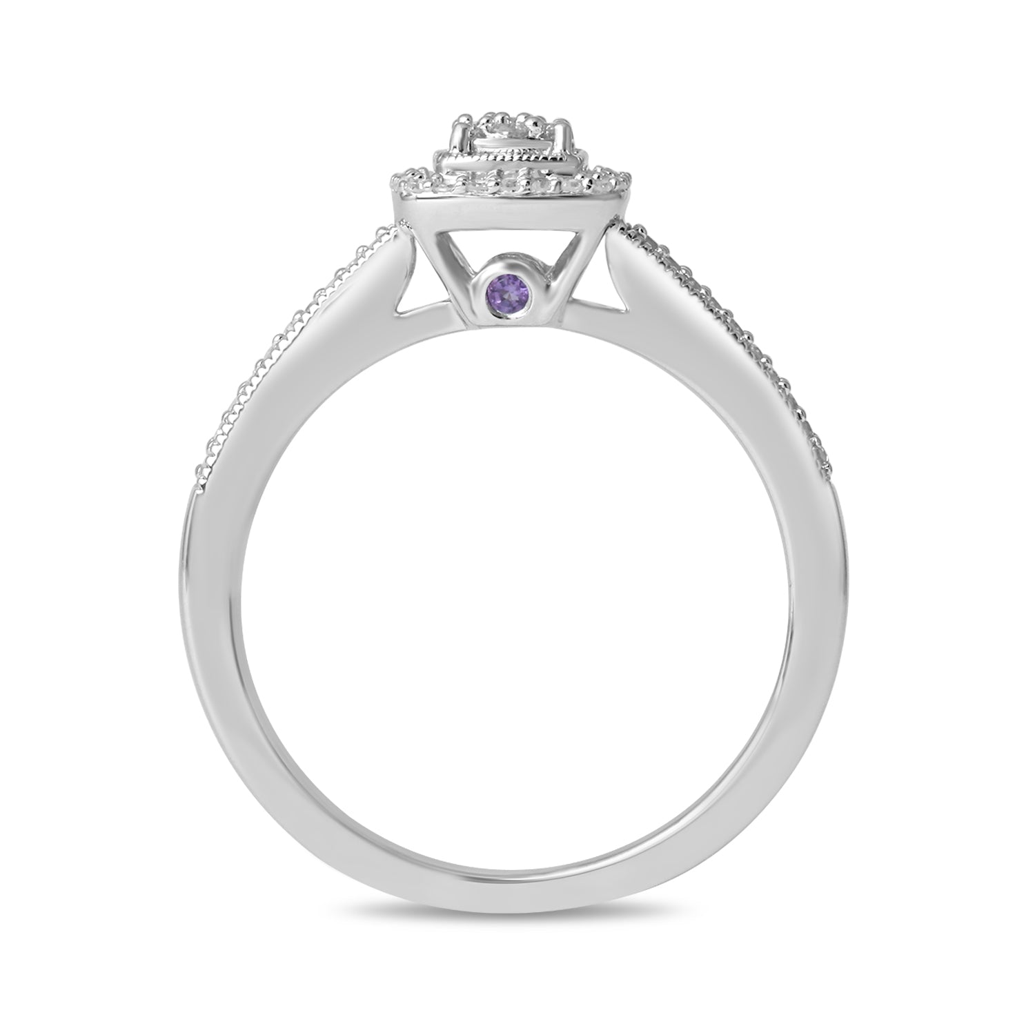 Details: Sterling Silver 1/6cttw Round Natural White Diamond Promise Ring with 1.3mm Round Amethyst on side