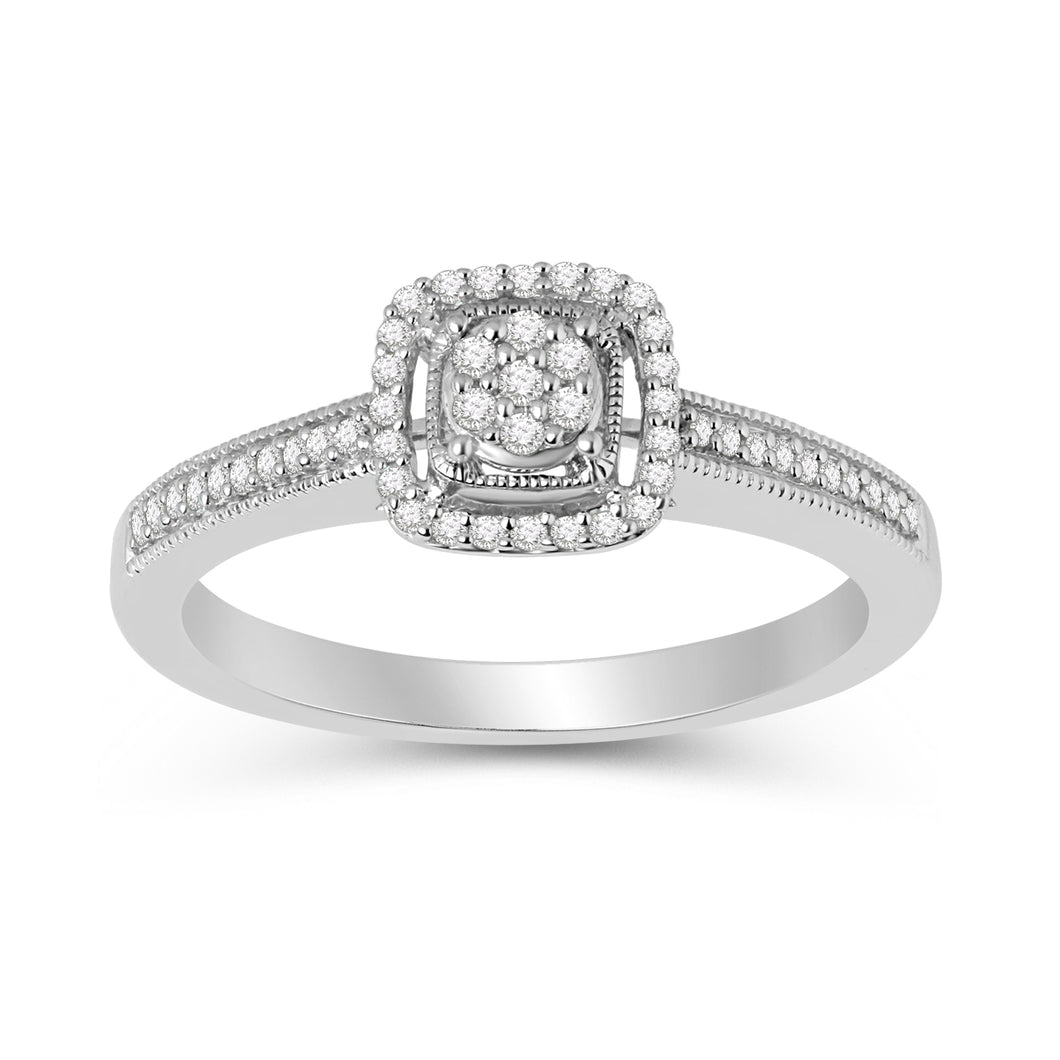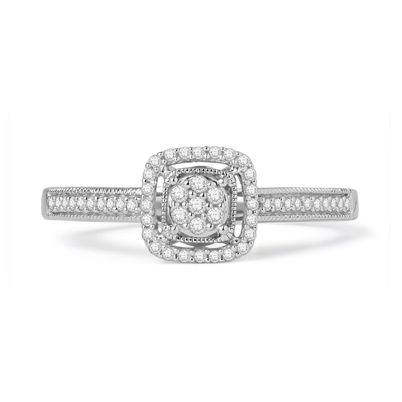 • Sterling Silver 1/6cttw Round Natural White Diamond Promise Ring with 1.3mm Round Amethyst.