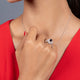 • Load image into Gallery viewer, Jewelili Cocktail Ring with Round and Baguette Shape Created White Sapphire in Sterling Silver 10x5mm Marquise Created Blue Sapphire View 3